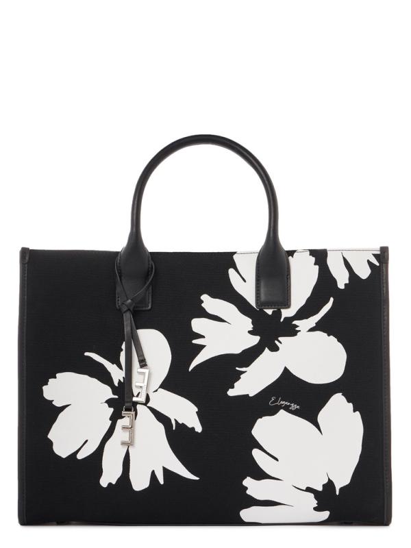 Женская сумка торговой марки Eleganzza из текстиля. Модель закрывается на скрытый магнит. Внутри одно отделение с карманом на молнии и открытым карманом, а также вкладная косметичка. Высота ручек – 28 см. Модель имеет ножки на дне. Вмещает формат А4.