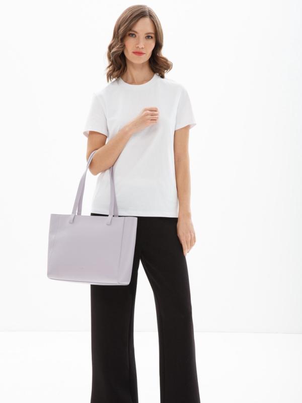 Женская сумка торговой марки Eleganzza из натуральной кожи. Внутри одно отделение с карманом на молнии и двумя открытыми карманами. Высота ручек - 27 см. Модель имеет ножки на дне. Вмещает формат А4.