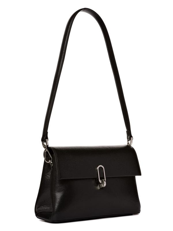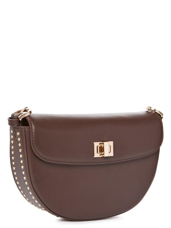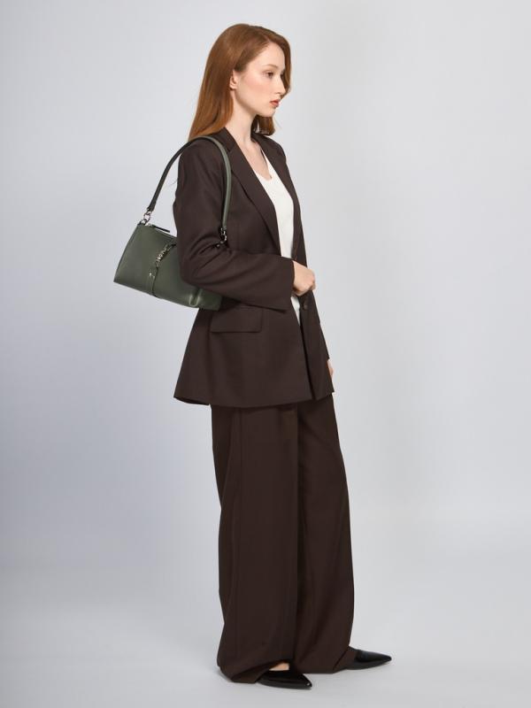 Женская сумка торговой марки Eleganzza из натуральной кожи. Модель закрывается клапаном и фиксируется металлическим элементом. Внутри одно отделение, в котором имеются три открытых кармана. Высота ручек – 32 см. Длина наплечного ремня из натуральной кожи – 108 см, ширина – 1,5 см. Модель не имеет ножки на дне. Не вмещает формат А4.