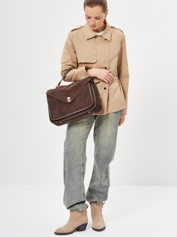 Женская сумка торговой марки Eleganzza из высококачественной замши в актуальном цвете Truffle. Закрывается клапаном на замок. Внутри одно отделение с карманом на молнии и тремя открытыми карманами. На задней стенке карман на молнии. Длина регулируемого съемного плечевого ремня из натуральной кожи - 107 см, ширина - 1,5 см. Модель имеет ножки на дне. Вмещает формат А4.