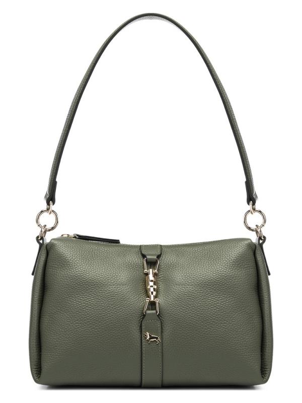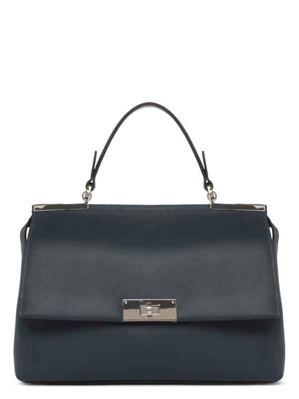 Женская сумка торговой марки Eleganzza из натуральной кожи. Модель закрывается клапаном и застегивается на поворотный замок. Внутри два отдела, в одном имеется карман на молнии, в другом - открытый карман. На задней стенке открытый карман. Высота ручек - 30 см. Длина регулируемого съемного плечевого ремня из натуральной кожи - 150 см., ширина - 1,8 см. Модель не имеет ножки на дне. Не вмещает формат А4.