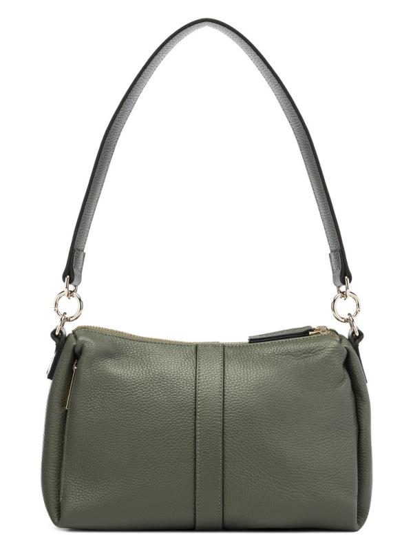 Женская сумка торговой марки Eleganzza из натуральной кожи. Модель застёгивается на молнию. Внутри одно отделение с карманом на молнии и открытым карманом. Высота ручек — 33 см. Модель не имеет ножек на дне. Не вмещает формат А4.