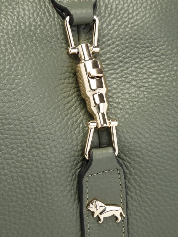 Женская сумка торговой марки Labbra из натуральной кожи. Модель закрывается на поворотный замок. Внутри три отделения с карманом на молнии и двумя открытыми карманами. Высота ручек - 14 см. Длина регулируемого съемного плечевого ремня из натуральной кожи - 90 см, ширина - 1,8 см. Модель имеет ножки на дне. Вмещает формат А4.