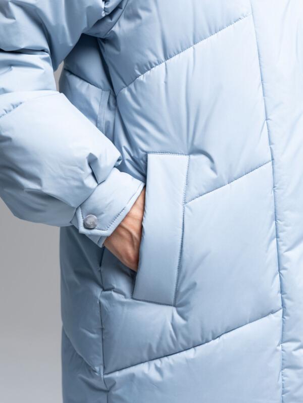 Утепленный плащ-рубашка прямого силуэта с втачным рукавом. В модели имеются два функциональных накладных кармана с клапанами на пуговицах, а также один внутренний карман. Ткань - плащевая с водоотталкивающей пропиткой, расстеганная ромбом. Утепление нового поколения ORSOTHERM 100 гр. Рекомендуемый температурный режим от +10°C до +18°C. Длина изделия: 110 см. Длина рукава: 64 см. Размеры: 42-56.