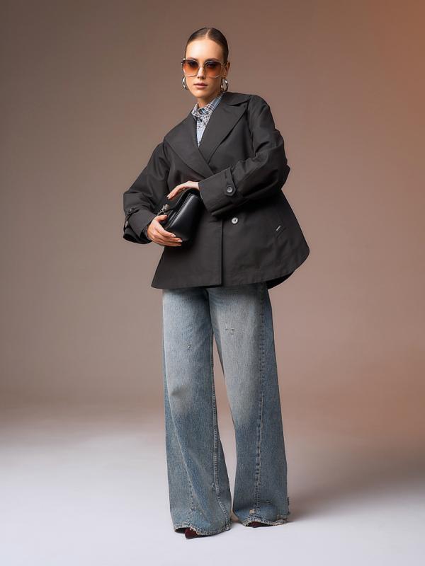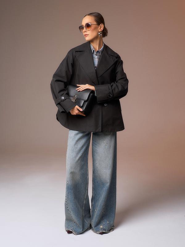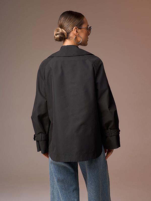 Легкая короткая куртка свободного силуэта с застежкой на молнию и кнопках. Изделие идет с объемным отстежным капюшоном на кнопках. В изделии имеются два настрочных кармана, вход в карман сбоку и сверху, а также есть один внутренний карман. Ткань изделия хлопкосодержащая, обработана качественной водоотталкивающей пропиткой. Изделие без утепления, рекомендуемый температурный режим от +17°C до +23°C. Длина изделия: 65 см. Длина рукава: 64 см. Размеры: 42-56.