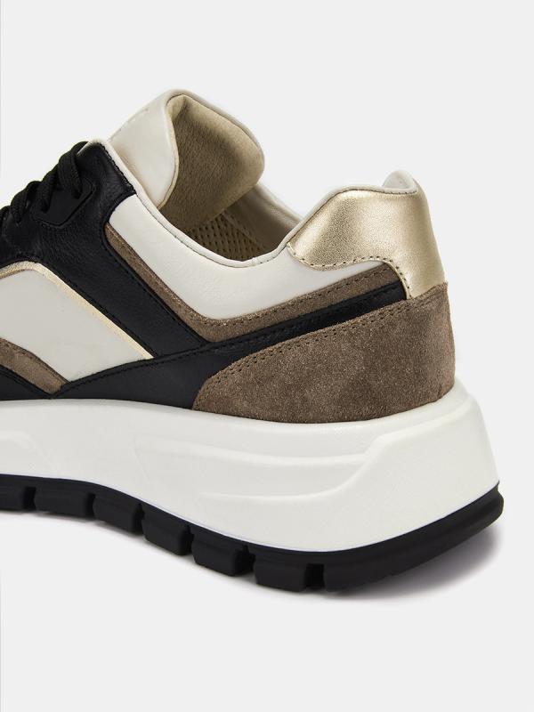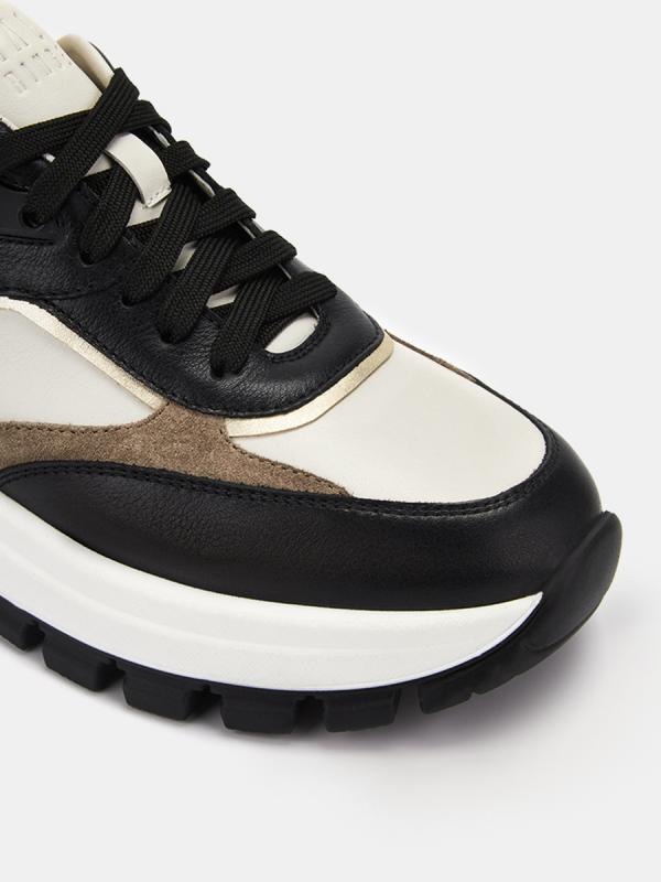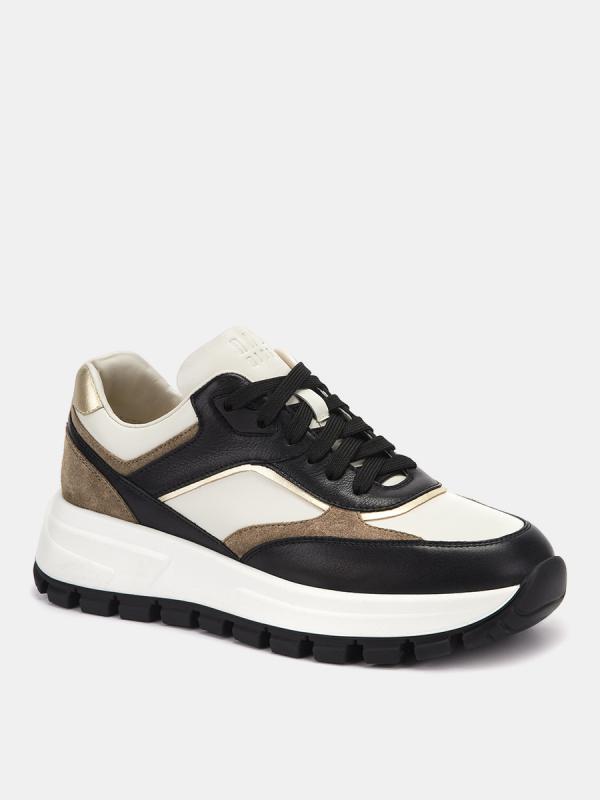 Женские кроссовки MOON стильной контрастной расцветки на широкой подошве с комбинированным верхом из натуральной кожи, спилка и отделкой экокожей. Стильная модель в актуальном дизайне отлично подходит для теплой весны. Благодаря удобной колодке и классической шнуровке обеспечивается надежная фиксация. Внутренняя отделка из натуральных материалов сохраняет комфортный микроклимат внутри обуви в течение всего дня. Широкая двухслойная подошва обладает отличной амортизацией, распределяет нагрузку при ходьбе и не дает ногам уставать.