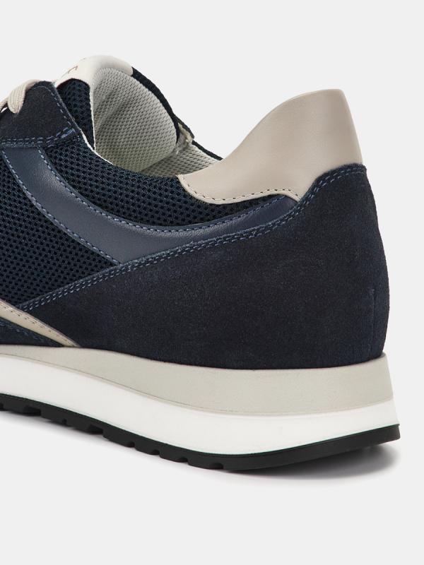 Кроссовки мужские KROS синего цвета. Сочетание натуральной кожи, спилка и сетчатого текстиля делает модель легкой и практичной, она хорошо садится по ноге и долго служит. Текстильно-кожаная подкладка комфортна для ног в течение всего дня. Двухслойные стельки созданы специально для активной жизни: верхний слой из полиэстера дышит и отводит влагу, основа из антибактериального материала Polisport смягчает удары при ходьбе, чтобы ноги не уставали. Пятку дополняет стабилизирующая вставка, которая фиксирует ногу во время движения. Подошва из двух видов полиуретана хорошо амортизирует и устойчива к износу. Оригинальный протектор обеспечивает надежное сцепление с любой поверхностью. Синие кроссовки дополнят повседневные образы с джинсами, брюками и спортивными костюмами.