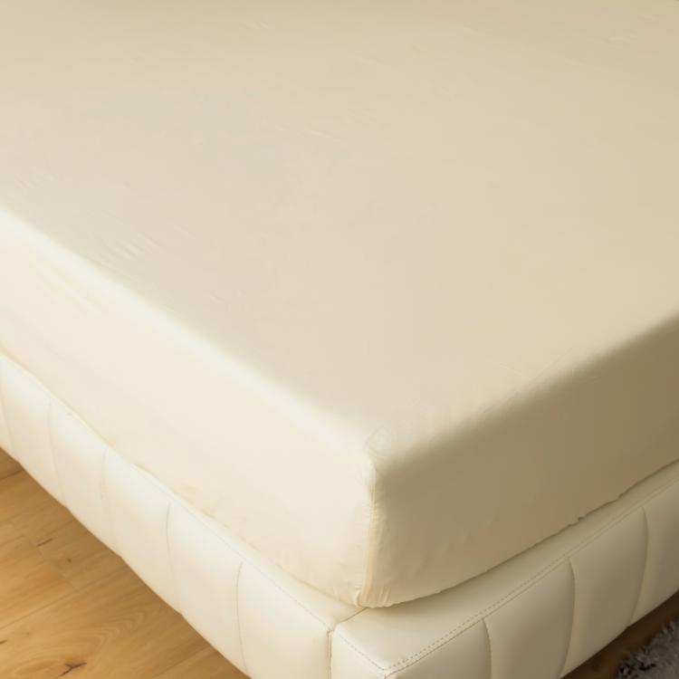 - Большая простыня из однотонного сатина идеально сочетается по цвету с нижней стороной пододеяльника.