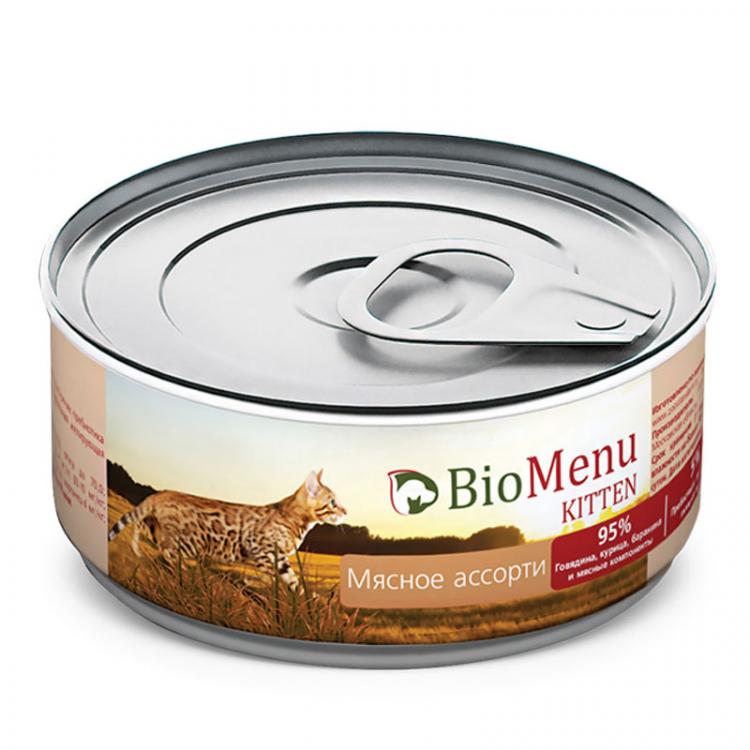 Консервированный паштет для котят с 1 до 12 месяцев, 95% мясных ингредиентов. Вкус мясное ассорти. Производство Россия.