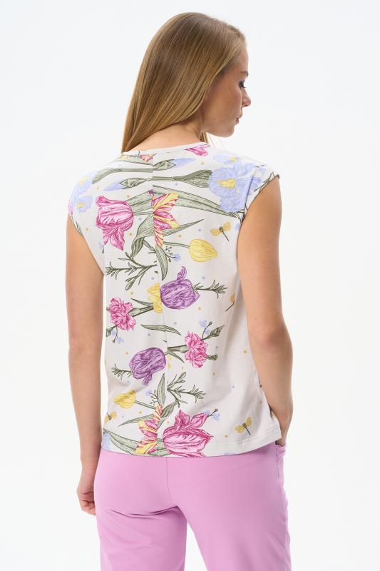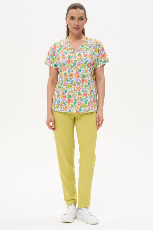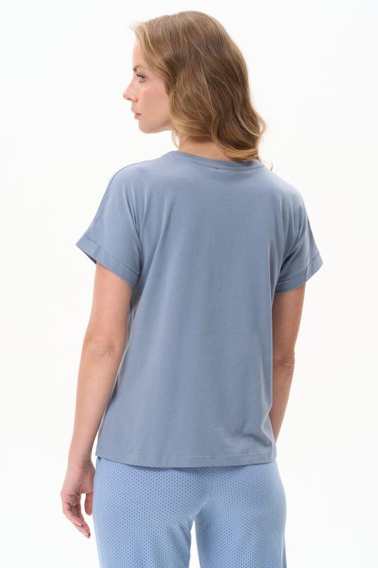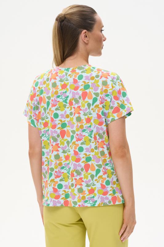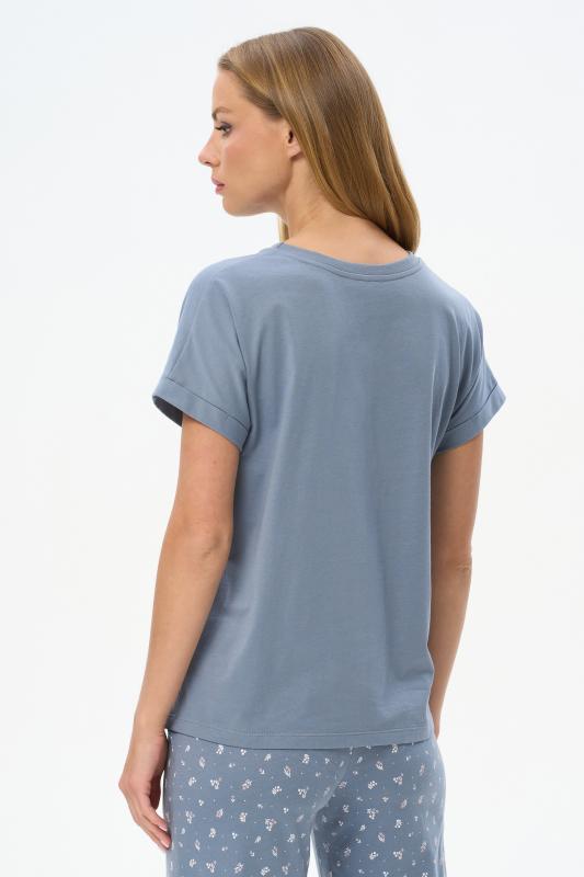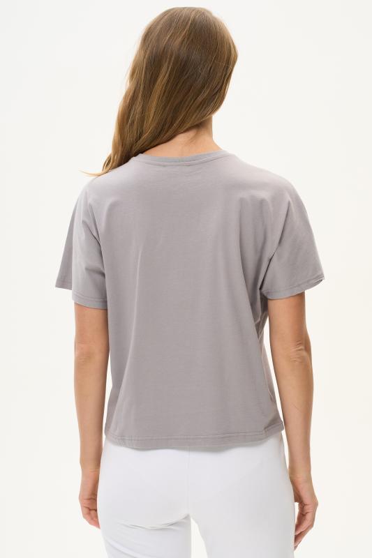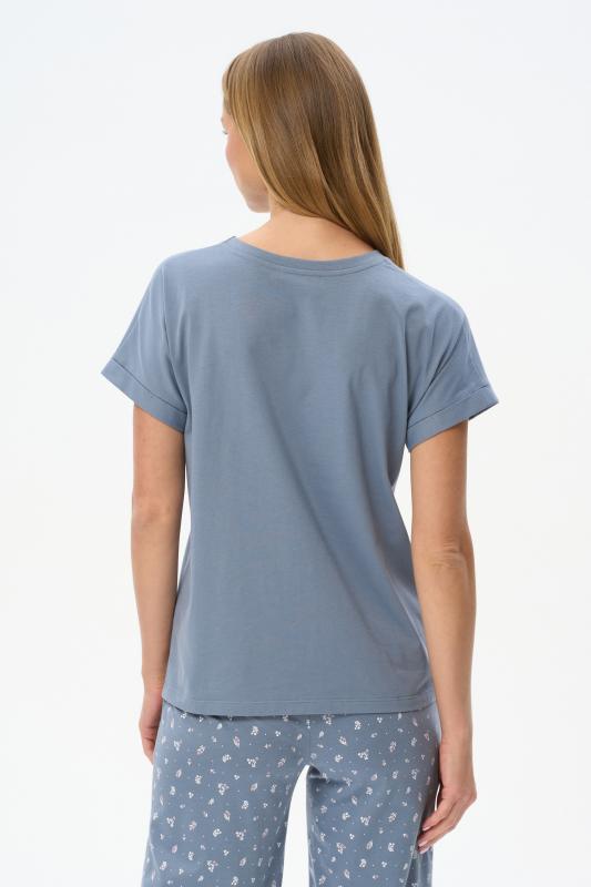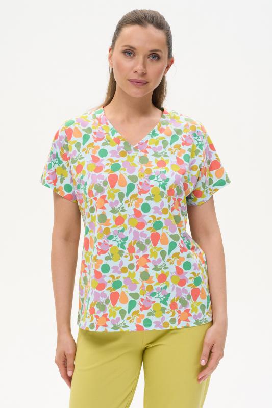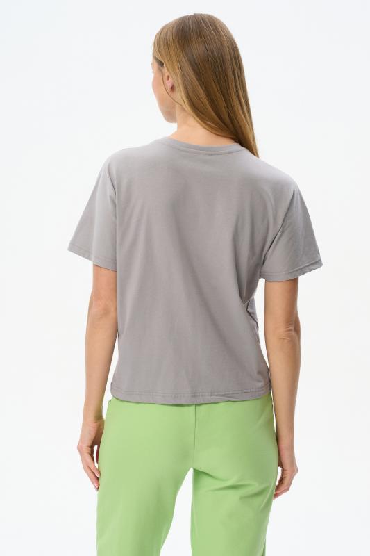 Футболка выполнена из хлопкового трикотажного полотна. V-образный вырез горловины, короткие цельнокроенные рукава. Рост модели на фото 170см.