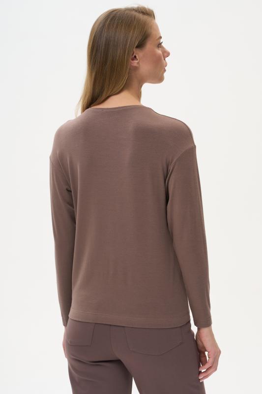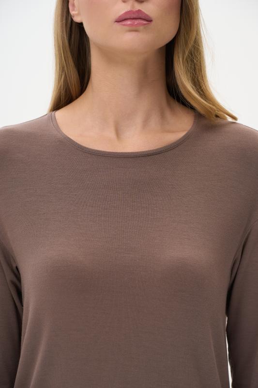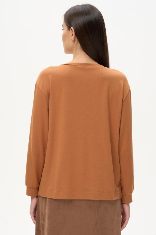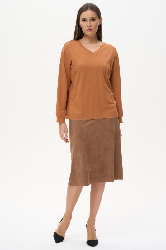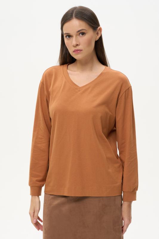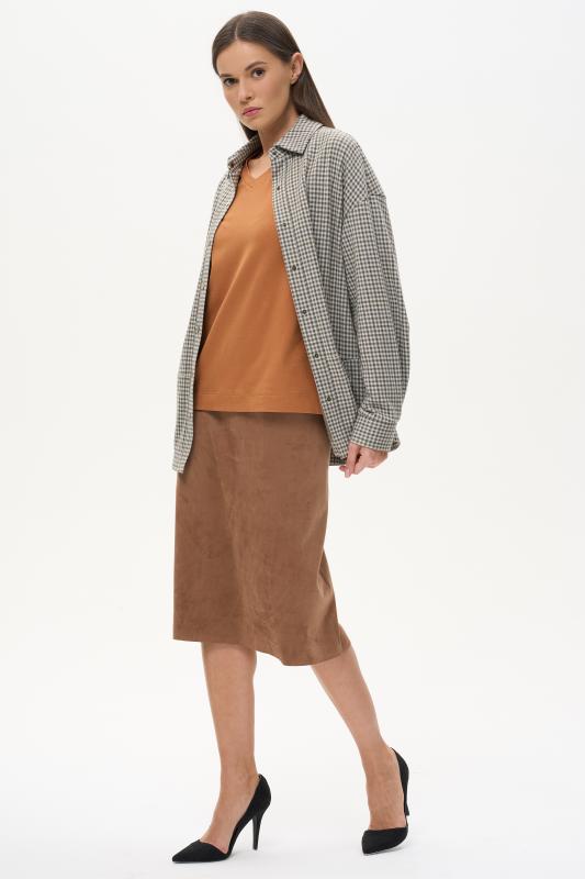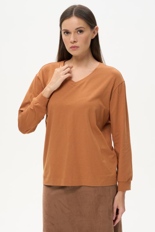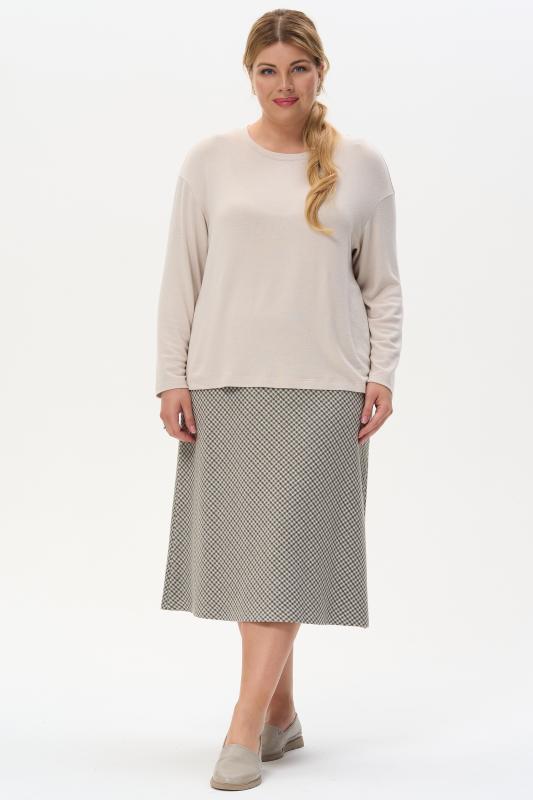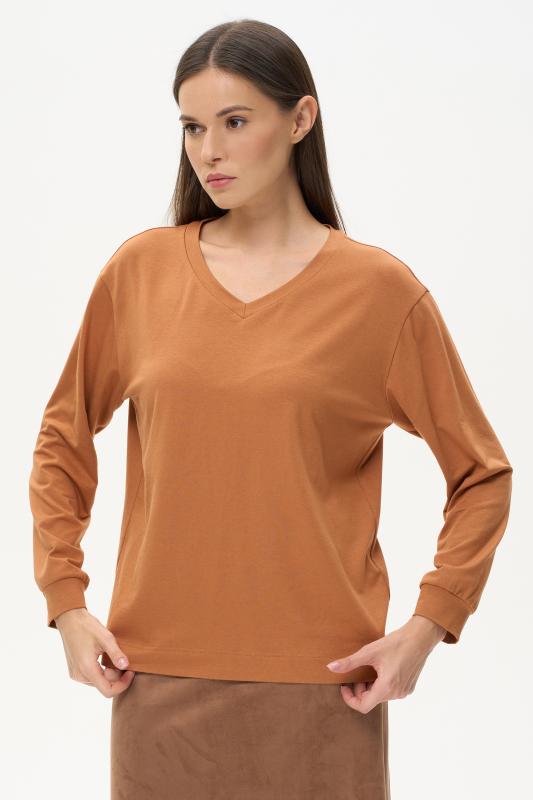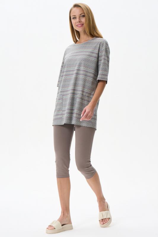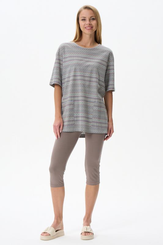 Туника расширенного силуэта из хлопкового трикотажного полотна. Фигурный вырез горловины, втачные рукава длинной чуть ниже логтя. Рост модели на фото 170.