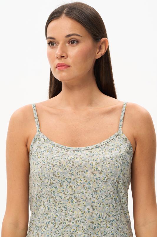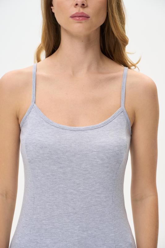 Майка на тонких бретелях из хлопкового трикотажного полотна - рибана. Рост модели на фото 178 см.