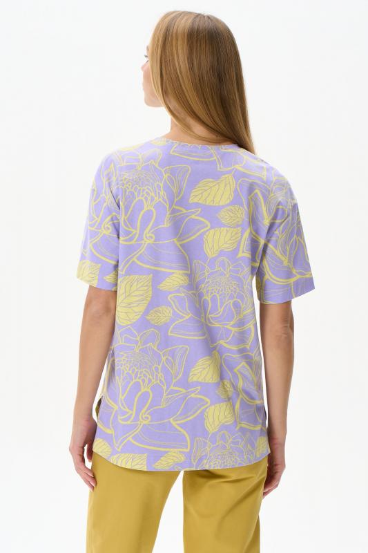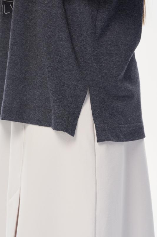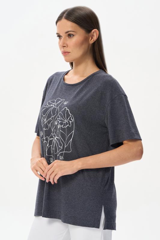 Удлиненная футболка свободного силуэта из хлопкового трикотажного полотна. Широкие рукава длиной до локтя. По низу изделия в боковых швах разрезы. Рост модели на фото 177