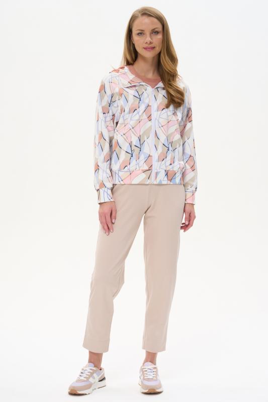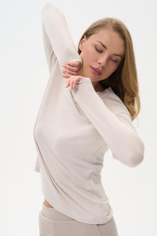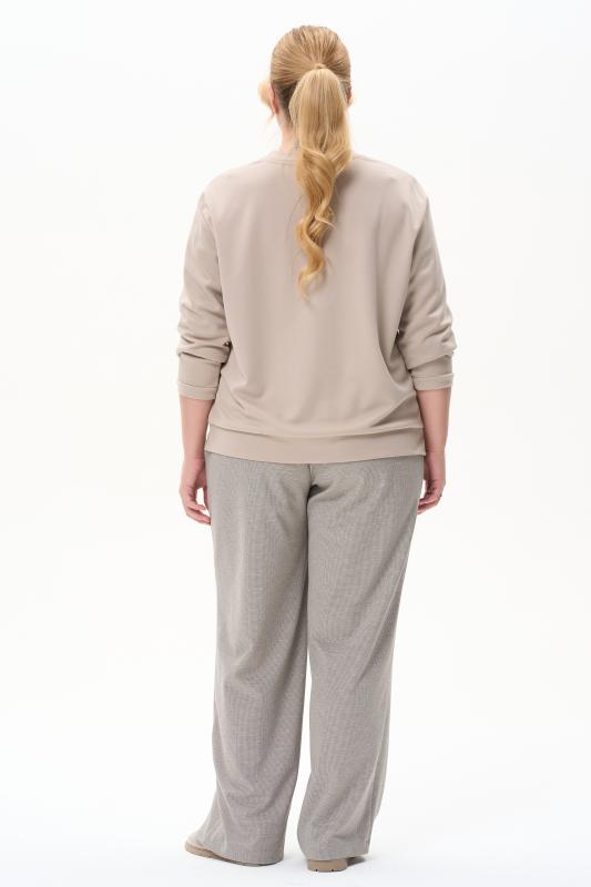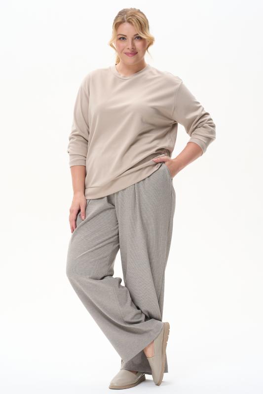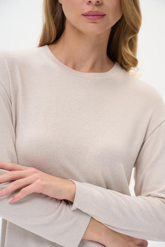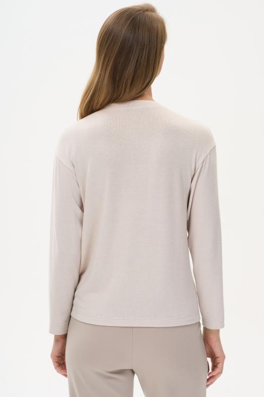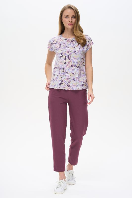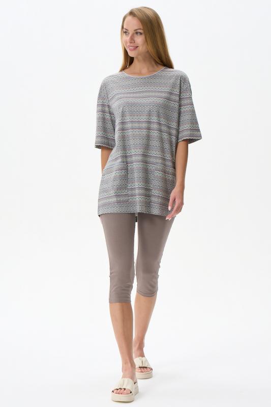Блузка свободного силуэта из вискозного трикотажного полотна с эффектом 3D. Круглый вырез горловины, цельнокроеные короткие рукава с манжетами, по низу изделия - манжет. Рост модели на фото 177см.