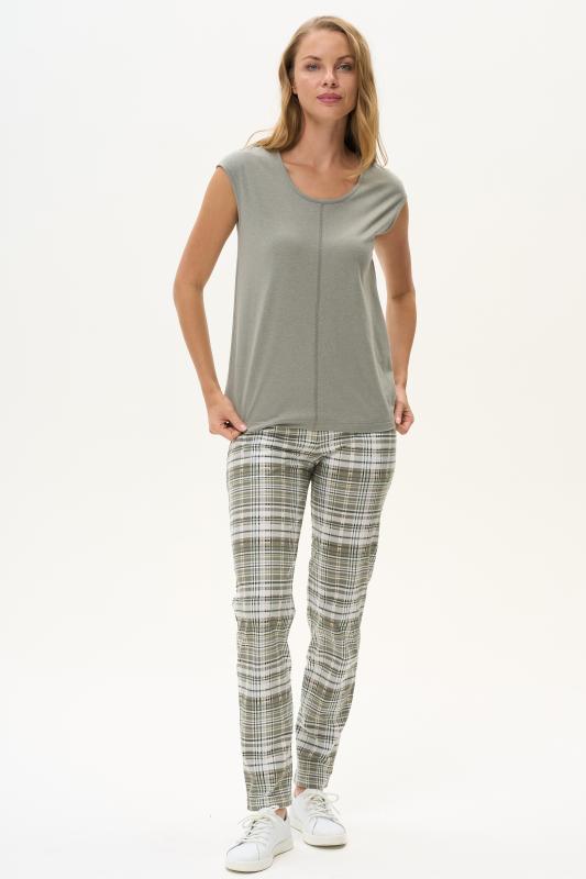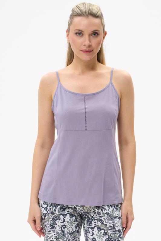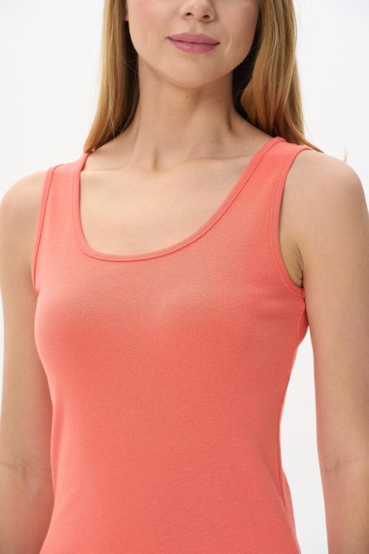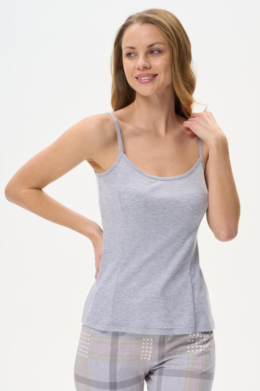 Комфортная майка из вискозного трикотажного полотна с эластаном. Круглый вырез горловины и проймы окантованы, рельефные швы. Рост модели на фото 170
