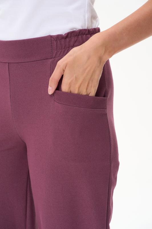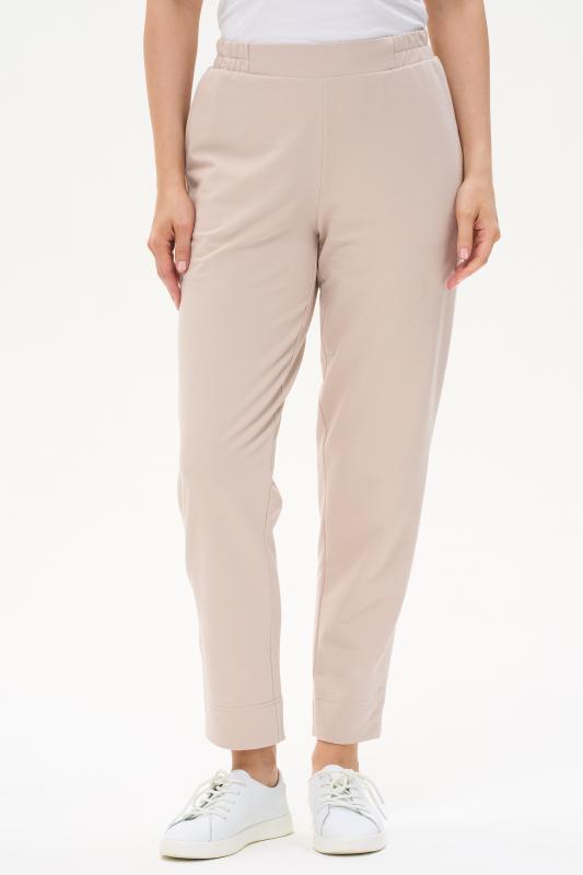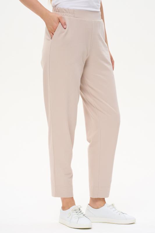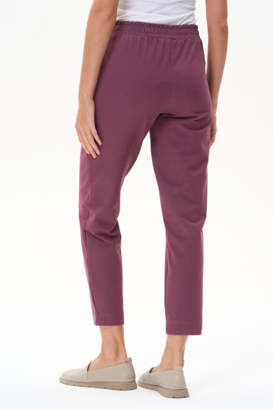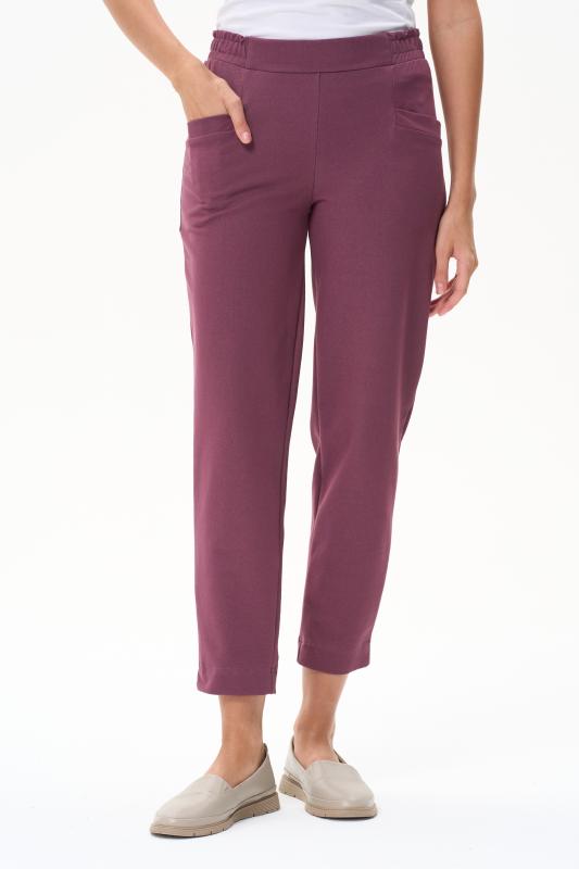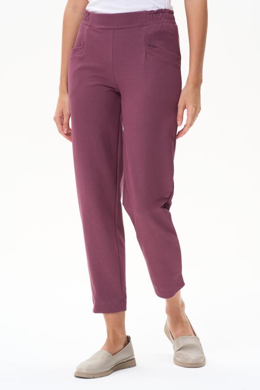 Укороченные, зауженные брюки с фигурными карманами, из хлопкового полотна джинскотт. Пояс с планкой и эластичной тесьмой внутри. Длина по боковому шву(без пояса) 87см. Рост модели на фото 177