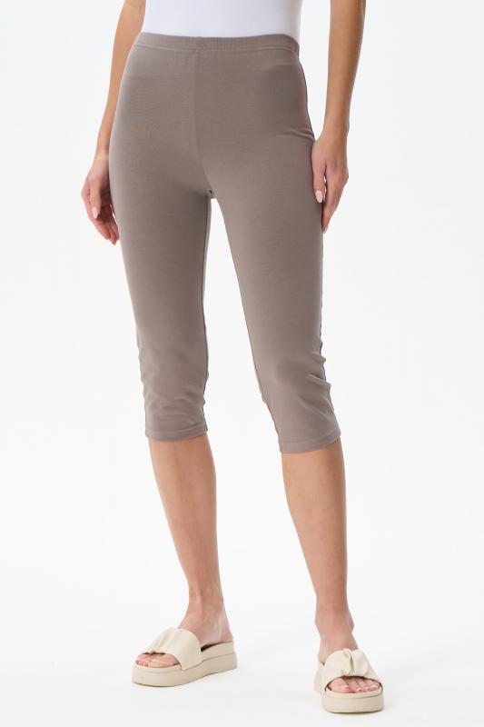 Комфортные облегающие бриджи выполнены из хлопкового трикотажного полотна с эластаном. Пояс с эластичной лентой внутри. Рост модели 175 см.