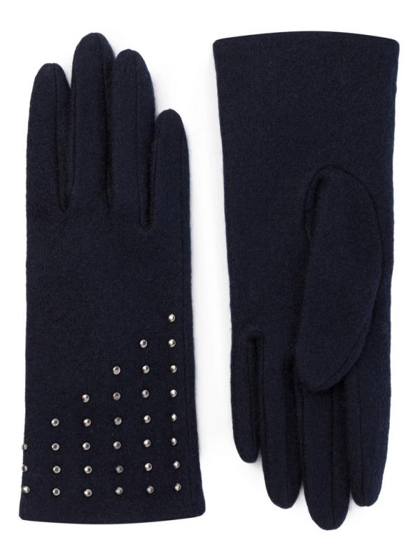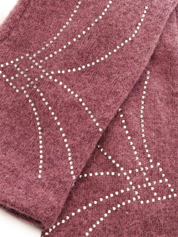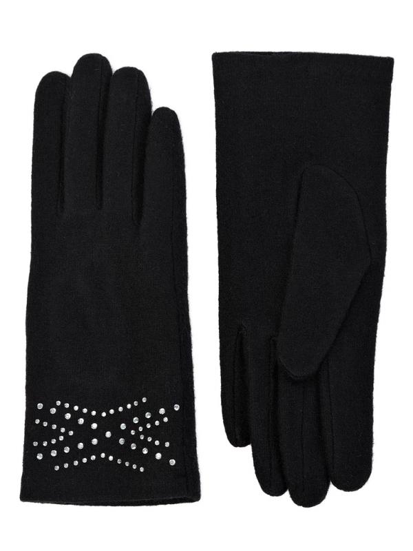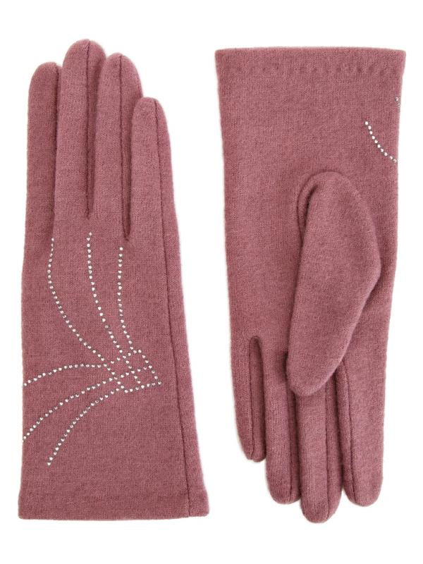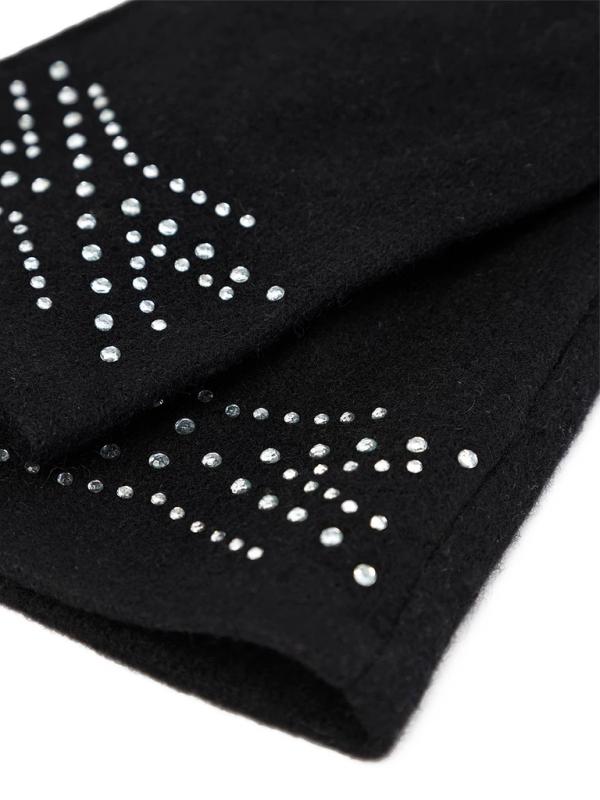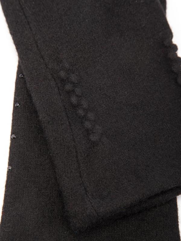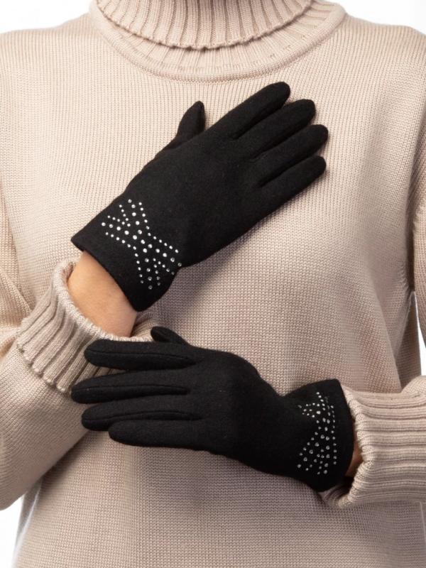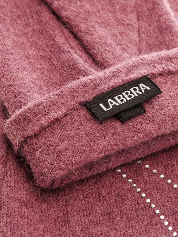 Перчатки женские торговой марки LABBRA производства Китай выполнены из трикотажной шерсти. Состав трикотажа: 80% шерсть, 20% нейлон. Модель без подкладки. Отделка - лицевая сторона украшена стразами. Длина манжеты от нижней точки большого пальца до края перчатки - 5,5 см. Длина пальцев - средняя.