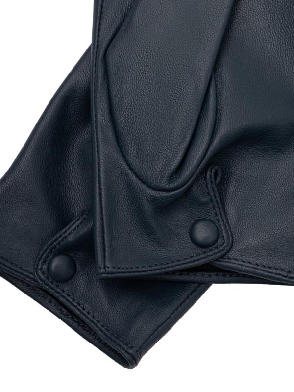 на ладонной стороне кнопка, обтянутая кожей основного цвета. Длина манжеты от нижней точки большого пальца до края перчаток - 3 см. Длина пальцев - укороченные.