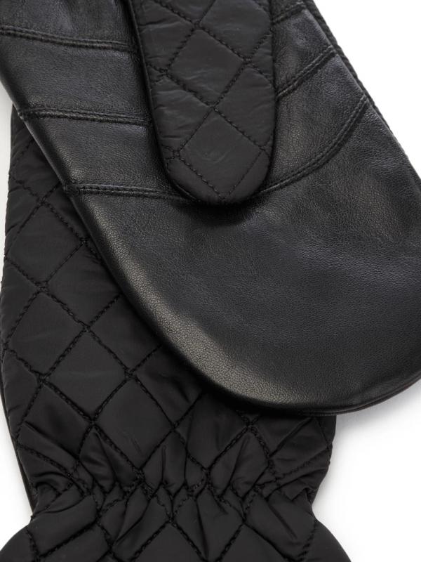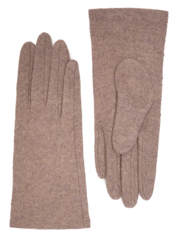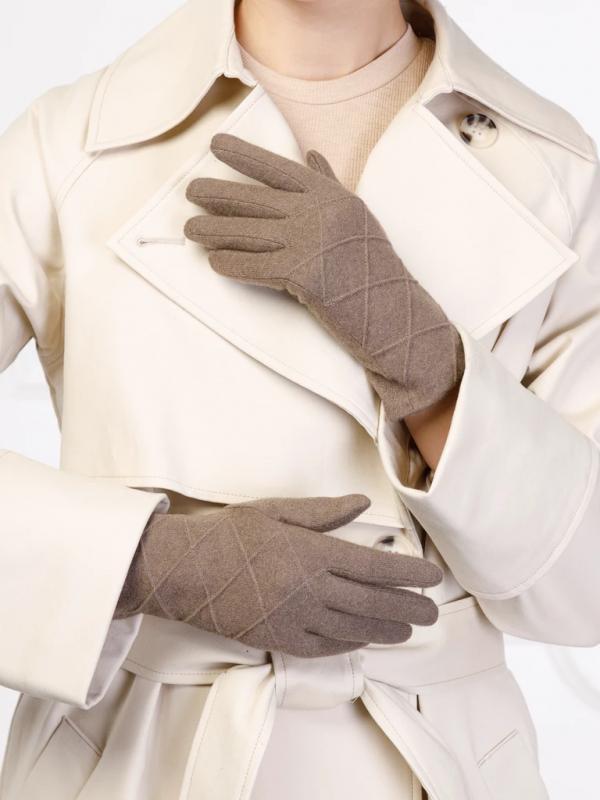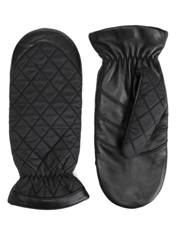 Рукавицы женские торговой марки LABBRA из натуральной кожи ягненка на ладонной части изделия и текстиля с декоративными строчками на лицевой. Производитель Китай. Подкладка: 70% шерсть, 30% акрил. Отделка - декоративные строчки в форме ромбов на лицевой стороне. Длина манжеты от нижней точки большого пальца до края - 5 см. Длина пальцев - средняя.