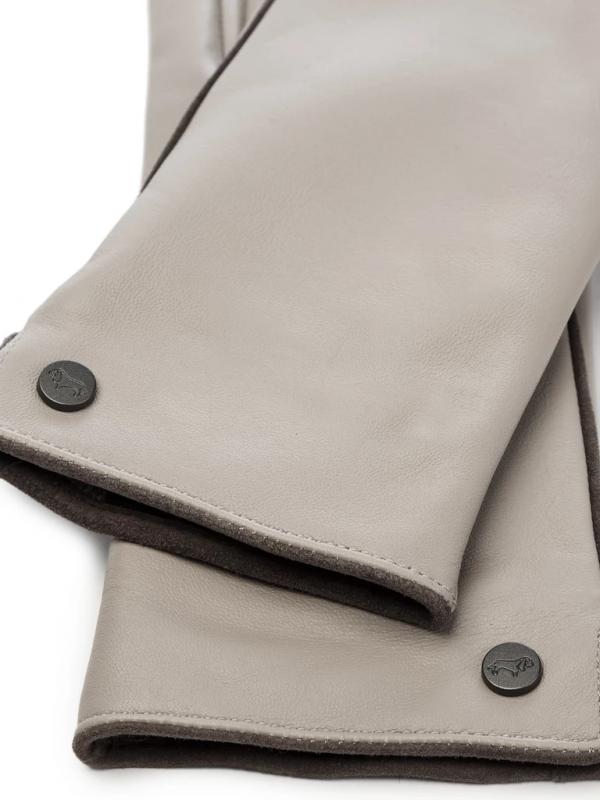 Перчатки женские торговой марки LABBRA производства Китай выполнены из натуральной кожи ягнёнка. Подкладка: шелк. Отделка - фурнитура с логотипом бренда на лицевой части