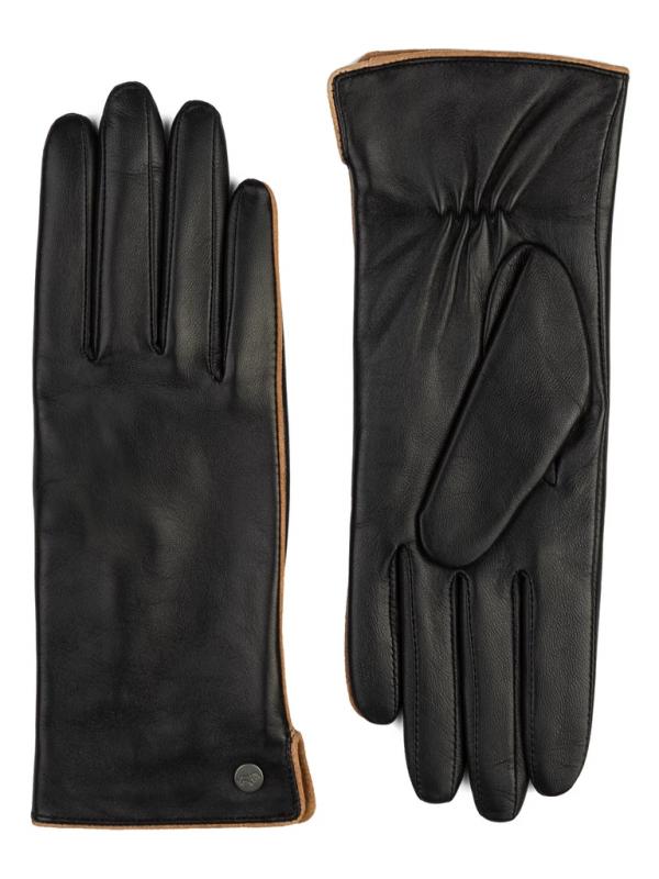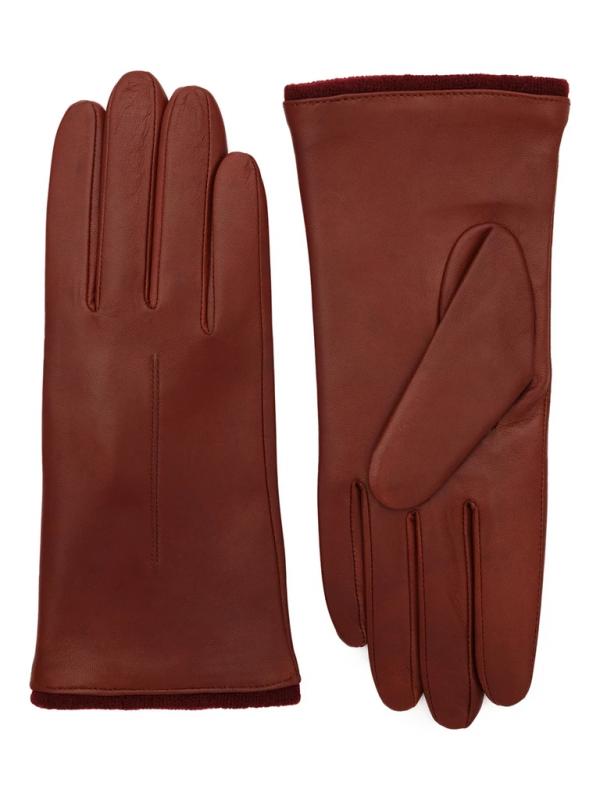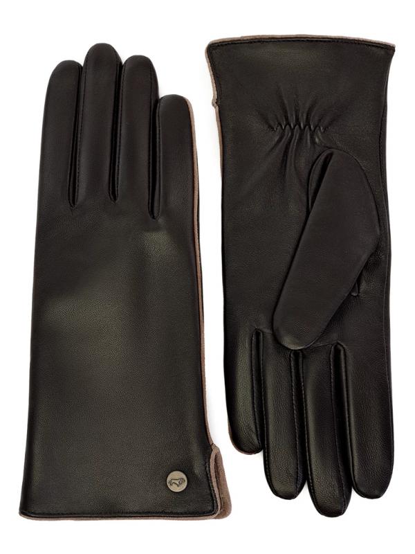 Перчатки женские торговой марки LABBRA из натуральной кожи ягненка. Производитель Китай. Подкладка: 70% шерсть, 30% акрил. Отделка - кант контрастного цвета на боковой части по линии мизинца и линии манжета, выполненный из велюра