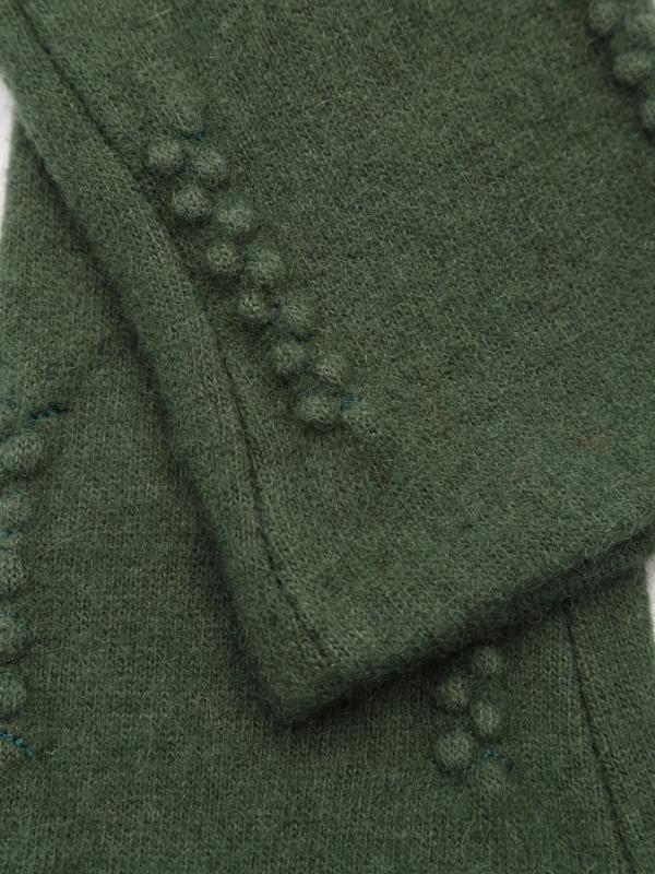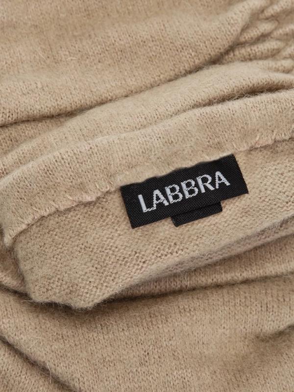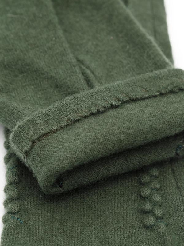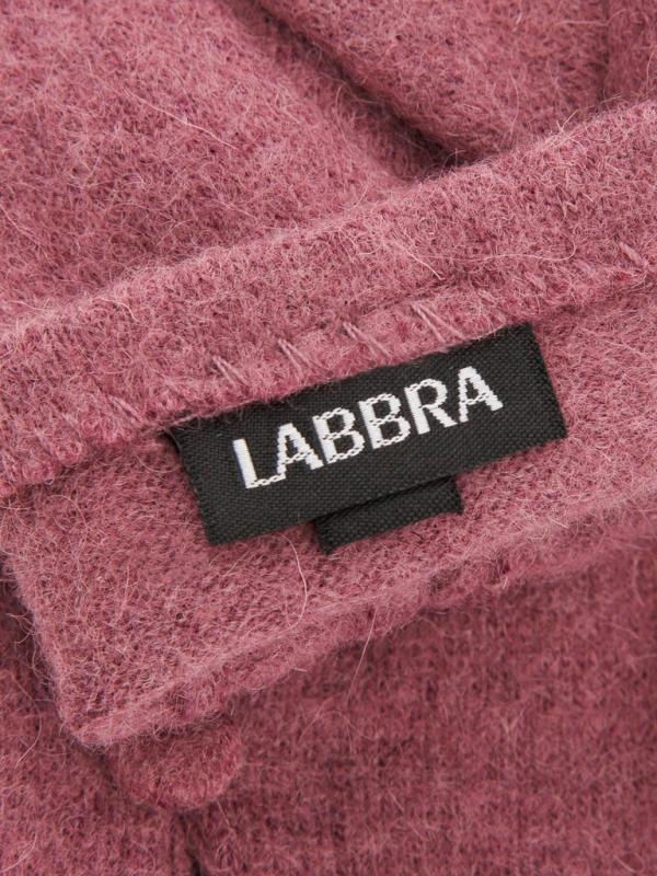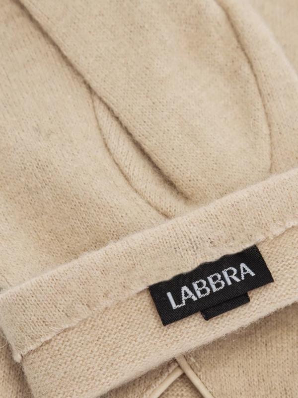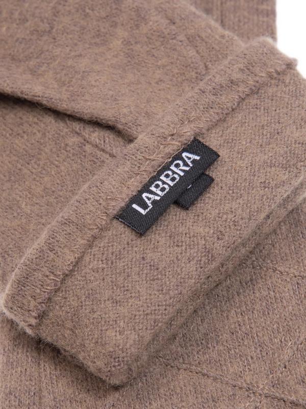 Перчатки торговой марки LABBRA производства Китай выполнены из трикотажной шерсти. Состав трикотажа: 80% шерсть, 20% нейлон. Без подкладки. Отделка - декоративные вертикальные отстрочки на боковой части манжеты. Длина манжеты от нижней точки большого пальца до края перчатки 5,5 см. Длина пальцев - средняя.