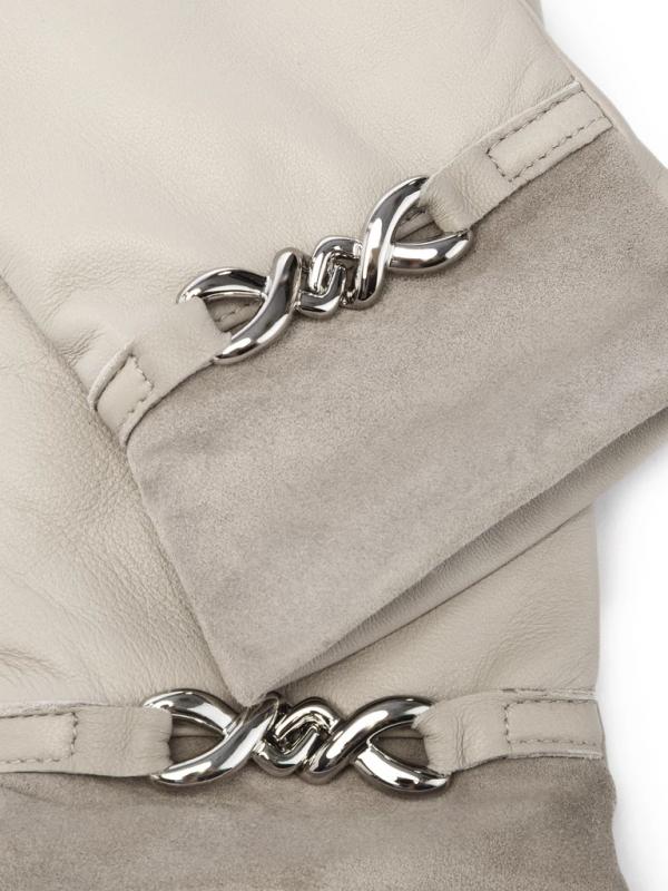 Перчатки женские торговой марки ELEGANZZA в пыльно-розовом цвете из натуральной кожи ягненка. Производство Китай. Подкладка: 100% шерсть. Декоративные элементы: фирменная фурнитура на фигурном ремешке