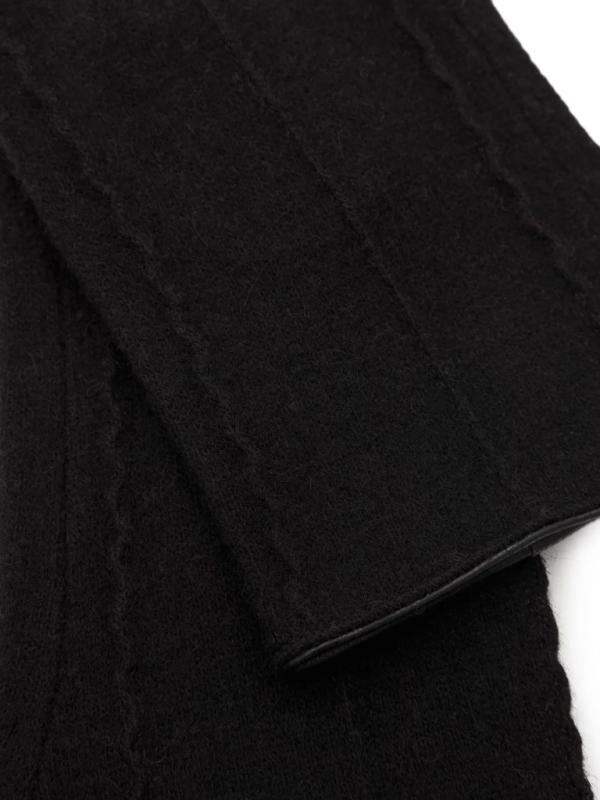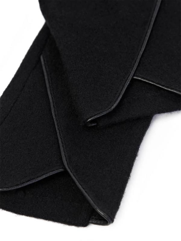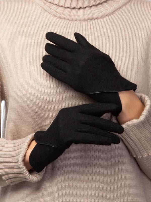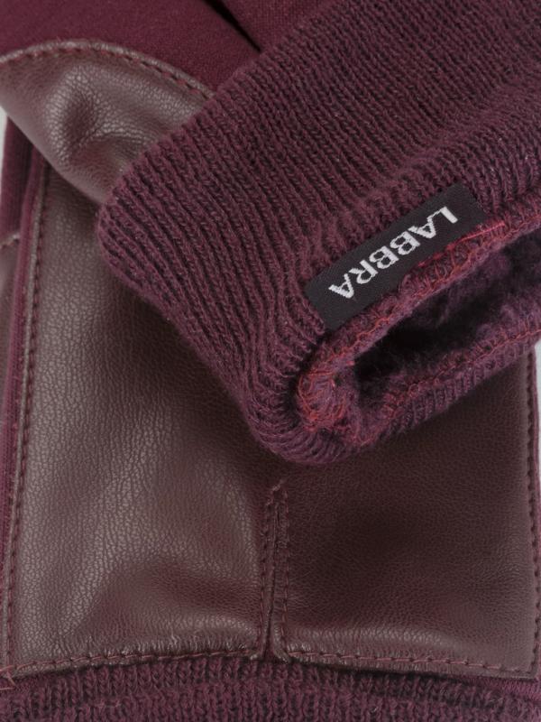 Перчатки женские торговой марки LABBRA производства Китай выполнены из трикотажной шерсти. Состав трикотажа: 80% шерсть, 20% нейлон. Модель без подкладки. Отделка - декоративный кант на манжете, расходящийся от линии разреза на лицевой стороне перчатки, выполненный из экокожи. Длина манжеты от нижней точки большого пальца до края перчатки - 6,5 см. Длина пальцев - средняя.