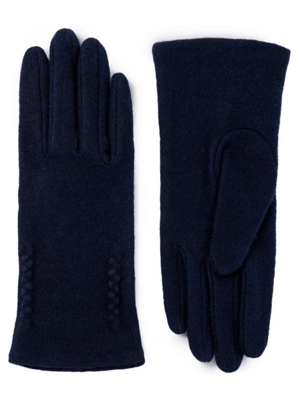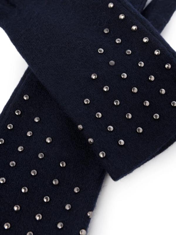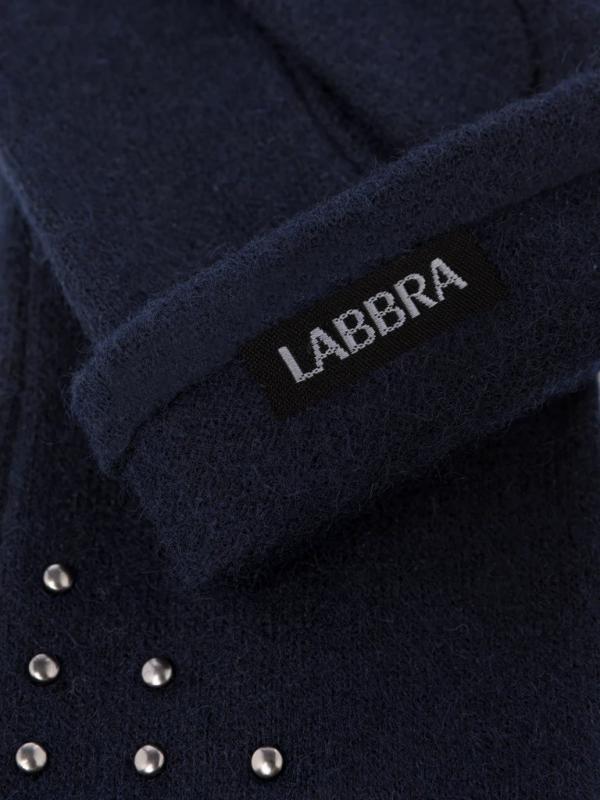 Перчатки торговой марки LABBRA производства Китай выполнены из трикотажной шерсти. Состав трикотажа: 80% шерсть, 20% нейлон. Без подкладки. Отделка - декор ассиметричной формы из хольнитенов на лицевой стороне. Длина манжеты от нижней точки большого пальца до края перчатки 6 см. Длина пальцев - средняя.