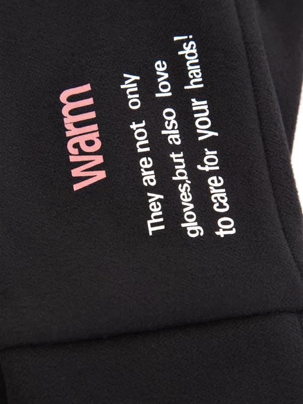Перчатки торговой марки LABBRA производства Китай выполнены из трикотажного полотна. Состав трикотажа: 90% полиэстер, 10% эластан. На лицевой стороне текстовый принт. Длина манжеты от нижней точки большого пальца до края перчатки 6 см. Длина пальцев - средняя. Модель перчатки универсального размера, подойдёт на любую полноту руки благодаря хорошему стрейчу и эластичности трикотажа.