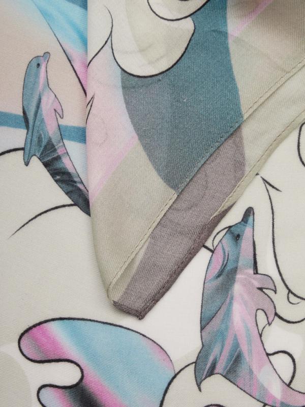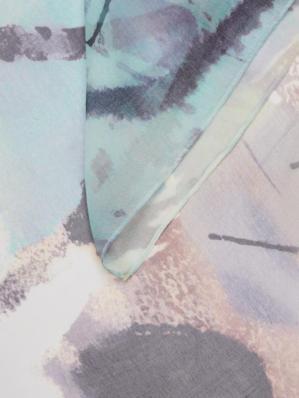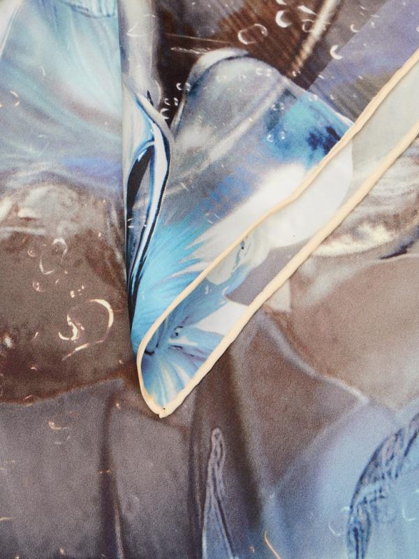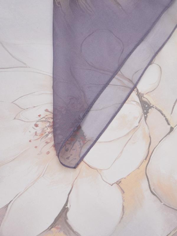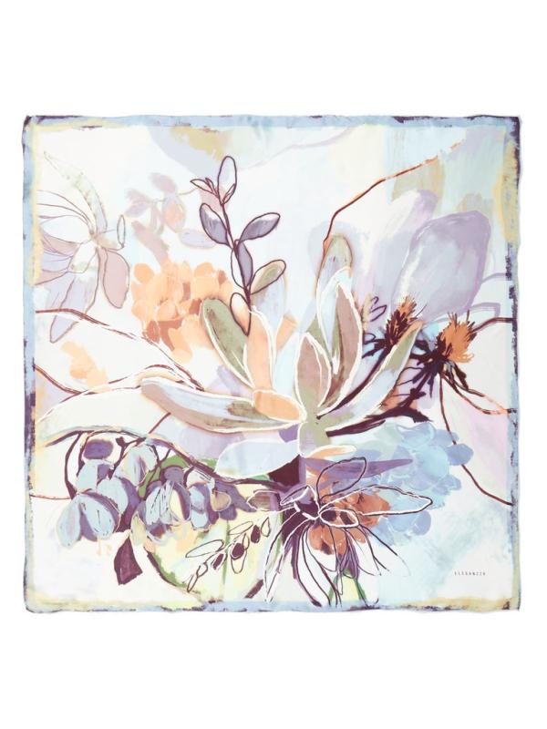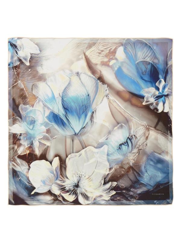 Женский платок торговой марки ELEGANZZA. Платок с принтом, где цветы словно тянутся к солнечному свету из‑под воды. Полупрозрачные переливы и мягкие оттенки создают ощущение глубины и спокойного сияния.