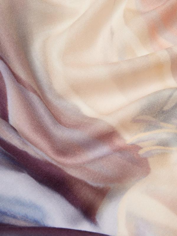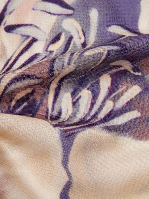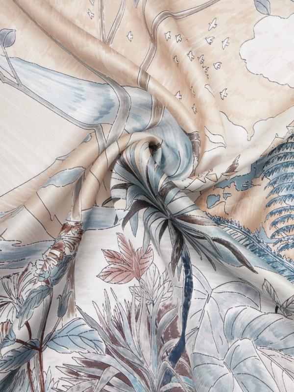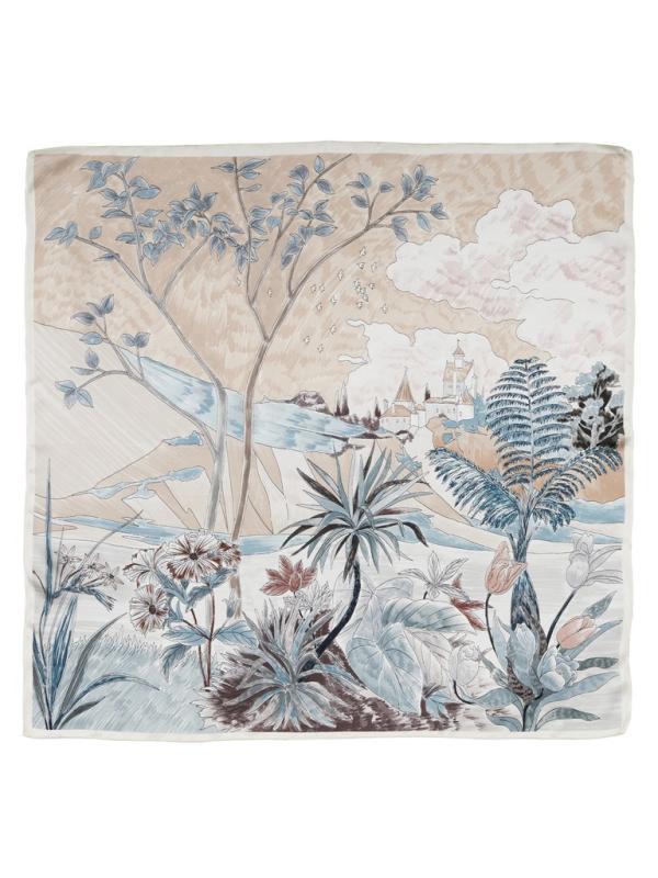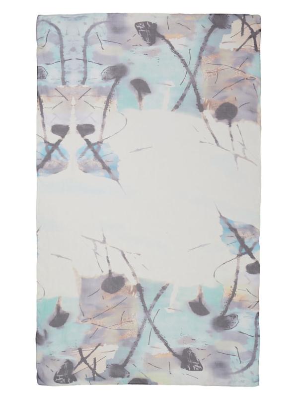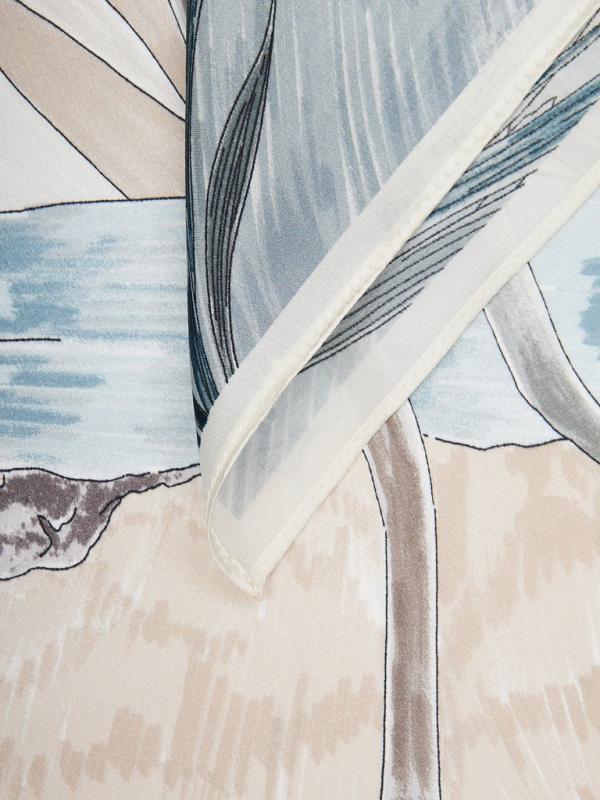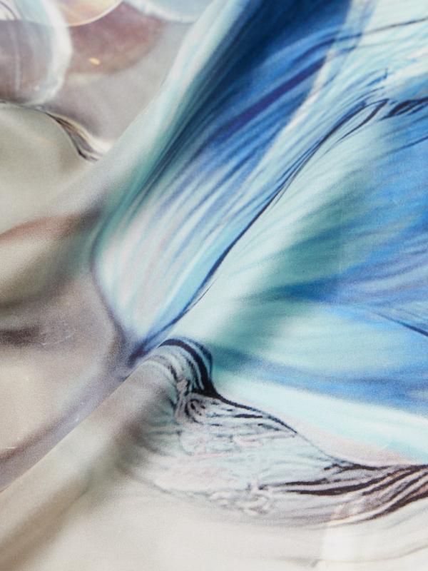Женский платок торговой марки ELEGANZZA. Платок с принтом, где цветы словно тянутся к солнечному свету из‑под воды. Полупрозрачные переливы и мягкие оттенки создают ощущение глубины и спокойного сияния.