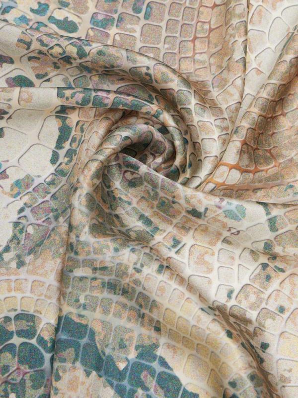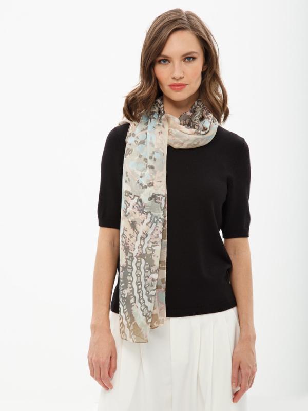 Женский платок торговой марки ELEGANZZA. Платок с принтом, вдохновлённым античной мозаикой: узор напоминает собранное вручную панно из мелких фрагментов, с выразительной фактурой и ощущением «камня» и времени. Такой рисунок добавляет образу благородный, культурный акцент и смотрится как арт-деталь.