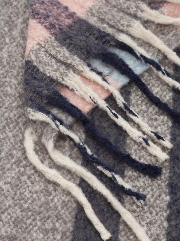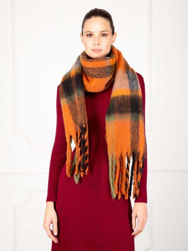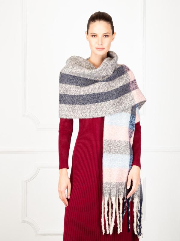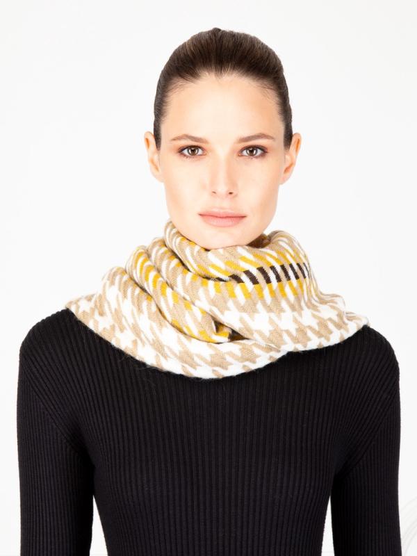 Шарф женский торговой марки LABBRA. Состав: 25% кашемир, 35% шерсть, 20% хлопок, 20% нейлон. Тип подгибки: фабричная закрепка. Размер: 38х50 см.