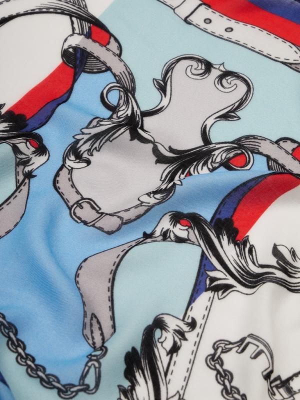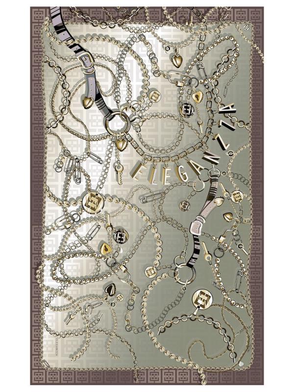 Женский палантин торговой марки ELEGANZZA. Палантин с принтом из россыпи цепей, брелоков и ремешков: узнаваемые детали коллекции собраны в выразительный узор. Акцентный аксессуар, который добавляет образу характер и лёгкую дерзость.