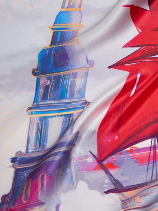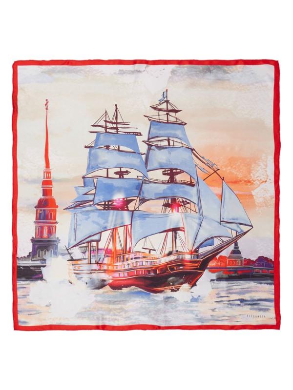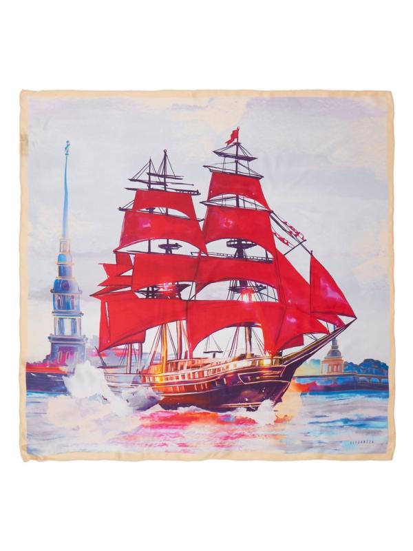 Женский платок торговой марки ELEGANZZA. Платок с принтом «Алые паруса» — образ мечты, которая становится реальностью. В центре композиции — корабль с алыми парусами, символ надежды и светлого будущего, как в истории Ассоль. Этот принт о вере в себя и о смелости идти навстречу своему горизонту.