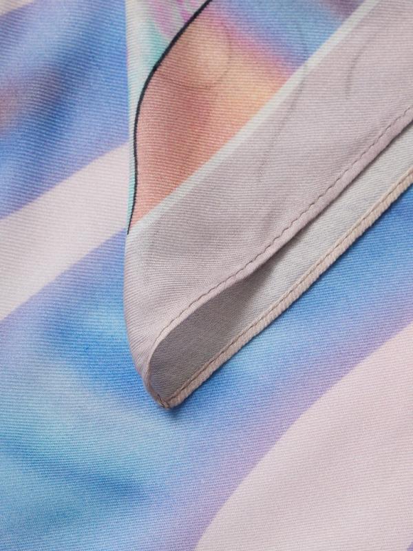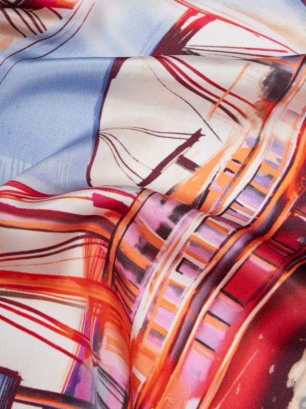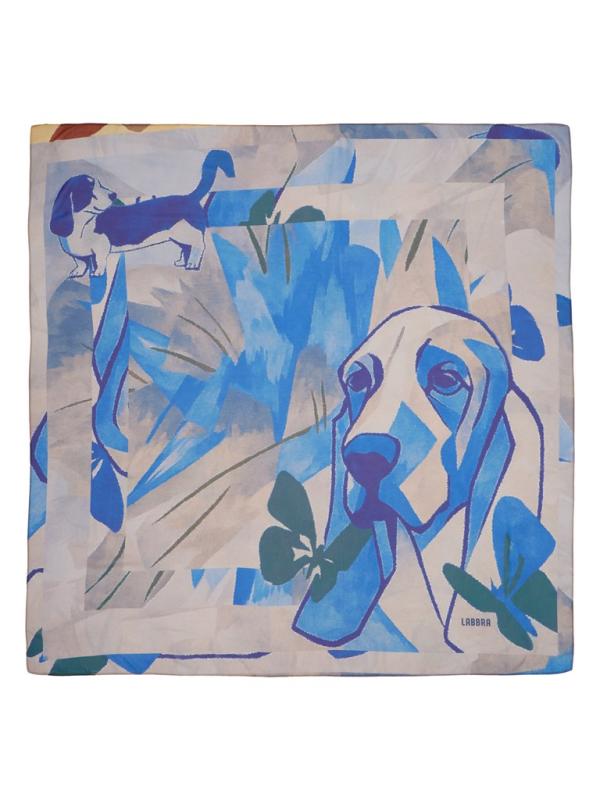 Женский платок торговой марки Labbra, выполненный из нежного шелка с добавлением вискозы. Изделие дополнено авторским принтом с фирменной символикой бренда - собачкой, изображенной в классическом и портретном вариантах и гармонично вписавшейся в абстрактную композицию из воздушных живописных мазков на фоне. Края изделия обработаны машинной подгибкой. В пару к платку предлагается стильный зонт-автомат в том же дизайне.