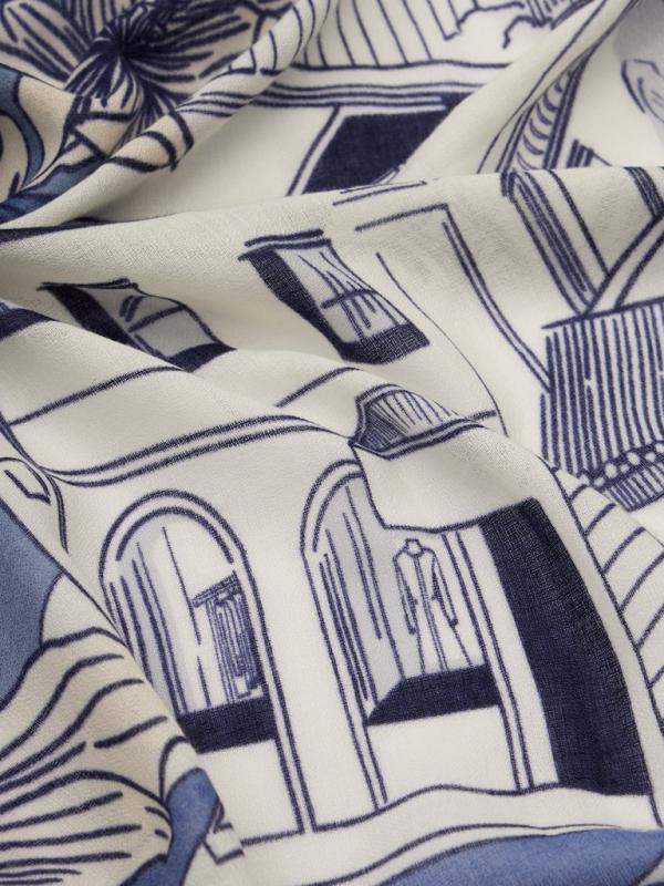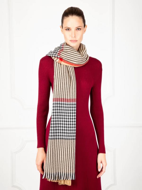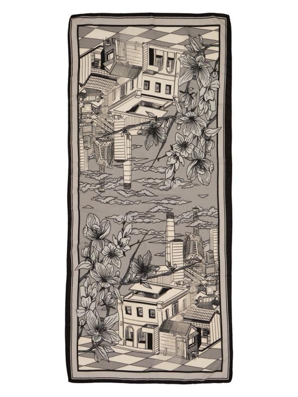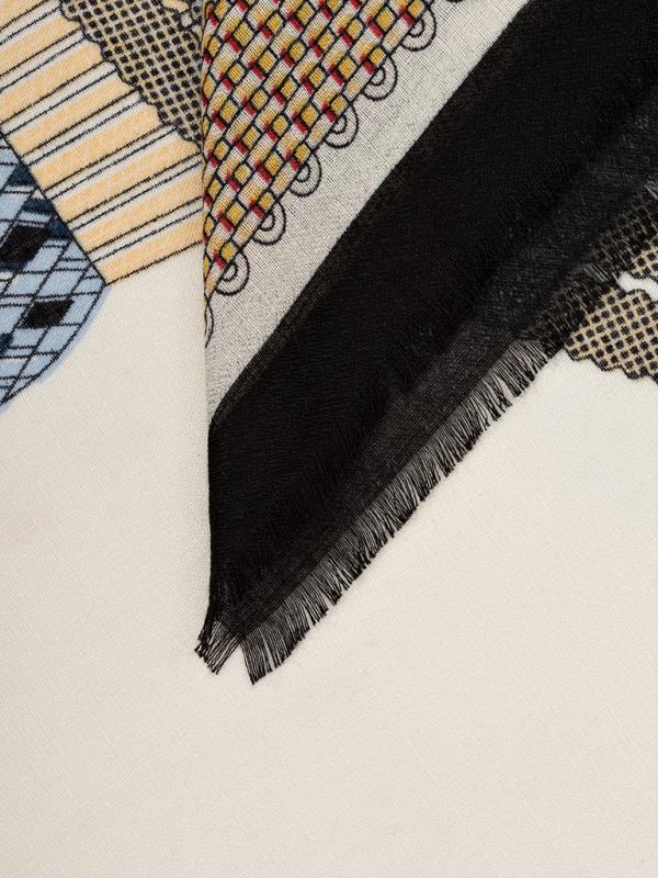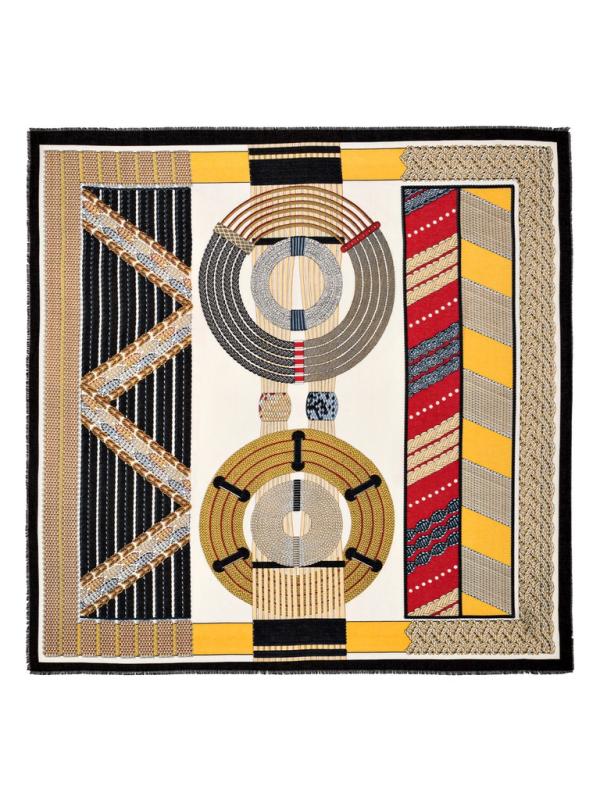 Женский платок торговой марки ELEGANZZA. Платок с парным дизайном к одежде из коллекции бренда: греческий орнамент в современной интерпретации — выверенная геометрия, ритмичный рисунок и выразительные контрасты.