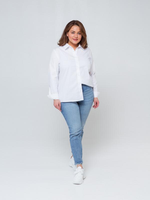 Базовая коттоновая рубашка. Застежка на пуговицы. Рукав на манжете. Рубашка выполнена из мягкого, но достаточно плотного хлопка. Базовая классическая рубашка- всегда актуальна и прекрасно комбинируется с брюками любого фасона, джинсами и юбками. ЗАМЕРЫ ИЗДЕЛИЯ в размерах: 52 - 58см(ПОГ), 57см(ПОТ), 61см(ПОБ), 49см(длина рукава по внутренней стороне), 19,5см(ПОплеча), 68см(длина изделия по центру спинки)