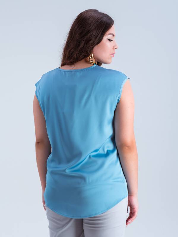 Базовый блузон без рукавов со спущенным плечом, прямого кроя из шелковистой ткани красивых оттенков. Прекрасна своей лаконичностью, удобна и легка. Дополнит любой образ. ЗАМЕРЫ ИЗДЕЛИЙ в размерах: 52 - 58см(ПОГ), 57см(ПОТ), 60см(ПОБ), 46,5см(ширина спины), 73см(длина по спинке вниз от 7го шейного позвонка), 17см(длина проймы)