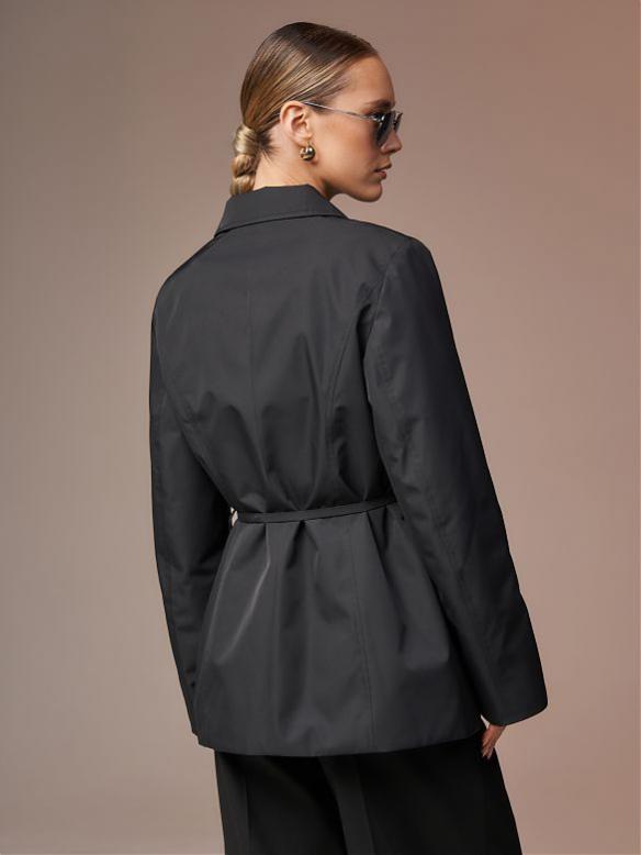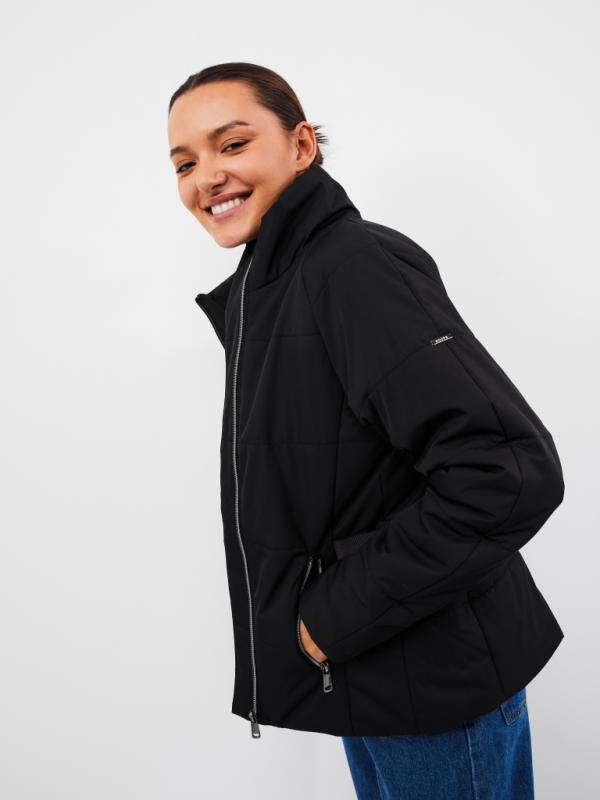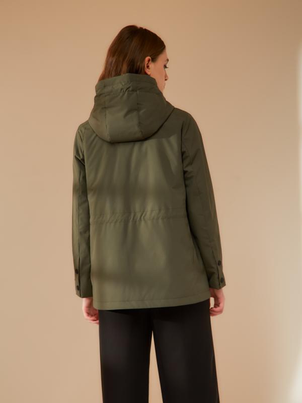 Стильный двубортный короткий плащ с внутренней съемной манишкой с капюшоном. Утяжка капюшона выполнена из эко-кожи. Имеются два функциональных прорезных кармана под клапанами. По спинке идет кулиска в районе талии. Есть внутренний карман. Ткань изделия обработана качественной водоотталкивающей пропиткой. Утепление нового поколения ORSOTERM 60 гр., рекомендуемый температурный режим от +15°C до +20°C. Длина изделия: 72 см. Длина рукава: 64 см. Размеры: 42 - 56.