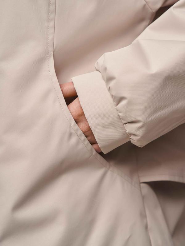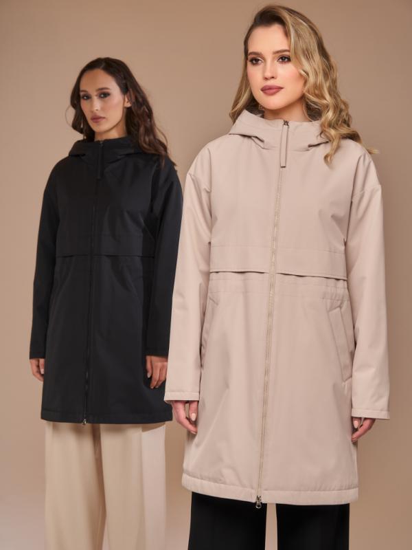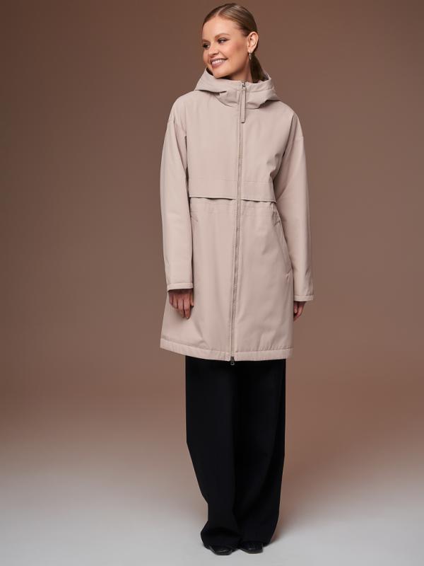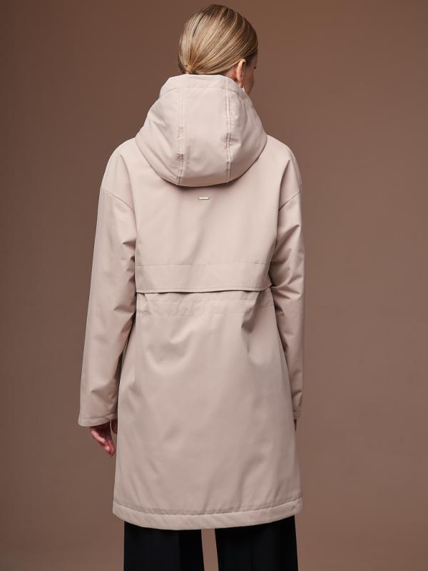 Утепленный плащ прямого силуэта со спущенным рукавом на резинке. Застежка на молнию в цвет изделия и на потайные кнопки. В изделии два функциональных кармана и один внутренний. Капюшон отстежной. Рукав втачной со спущенной линией плеча. По спинке изделия по линии талии есть утяжка с выходом на подкладку. Плащ выполнен из ткани на мембране с качественной водоотталкивающей пропиткой. Температурный режим изделия (от +10°C до +18°C). Утеплитель нового поколения ORSOTERM.150 г-м2.