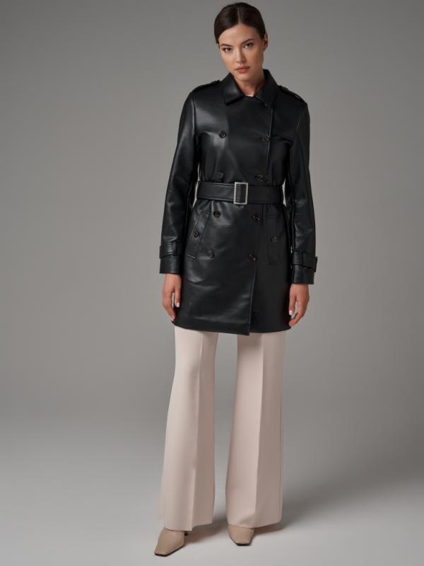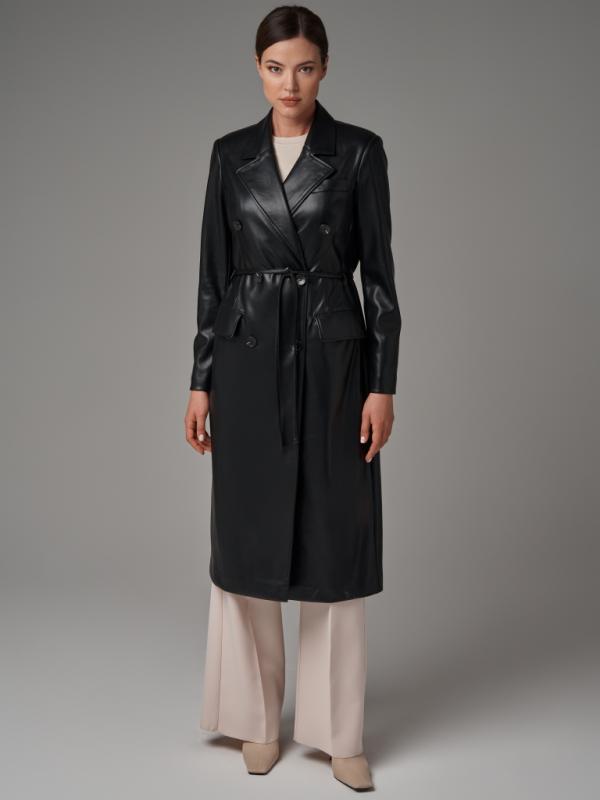 Коллекция: Зима 2023-2024 Длина изделия по спинке: 88 см Длина рукава: 64 см Плотность утеплителя: без утепления.. Рекомендуемый температурный режим: от +13°C до +20°C Покрой: прямой. Тип рукава: втачной Тип карманов: прорезные с листочками Состав: высококачественная экокожа 100% PU Материал подкладки: 100% Полиэстр Размеры: S, M, L Детали: застежка на пуговицы, в комплекте пояс из основной ткани.