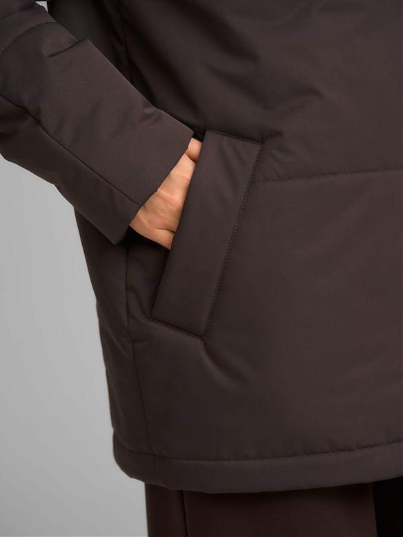 Плотность утеплителя: 100 г-м2 Характеристики ткани: ткань с мембраной и водоотталкивающей пропиткой Вид застежки: потайные кнопки + магниты Система измерения размера одежды - изделия: РОССИЯ Состав: 100% полиэстер