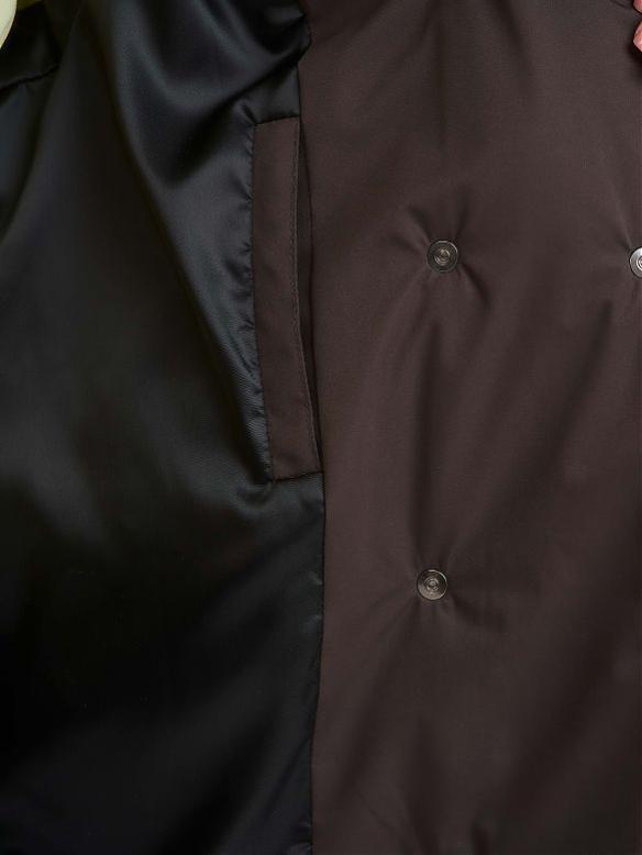 Стильный двубортный короткий плащ с внутренней съемной манишкой с капюшоном. Утяжка капюшона выполнена из эко-кожи. Имеются два функциональных прорезных кармана под клапанами. По спинке идет кулиска в районе талии. Есть внутренний карман. Ткань изделия обработана качественной водоотталкивающей пропиткой. Утепление нового поколения ORSOTERM 60 гр., рекомендуемый температурный режим от +15°C до +20°C. Длина изделия: 72 см. Длина рукава: 64 см. Размеры: 42 - 56.