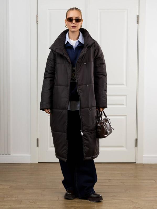 Длина изделия по спинке: 100 см Длина рукава: 65 см Плотность утеплителя: синтепон 200 г-м2 Температурный режим: от 0°C до -10°C Покрой: О-силуэт, оверсайз Тип рукава: спущенное плечо Тип карманов: Листочки на магнитной застежке. Состав: 100% полиэстер Материал подкладки: 100% полиэстр Ткань: блестящая с водоотталкивающей пропиткой. Размеры: 42-56 Детали: Капюшон не съемный, застежка на молнию в цвет и потайные кнопки.