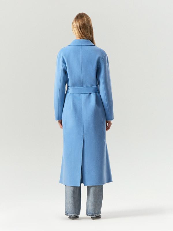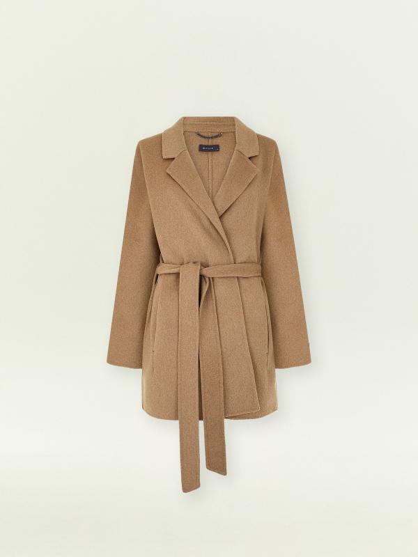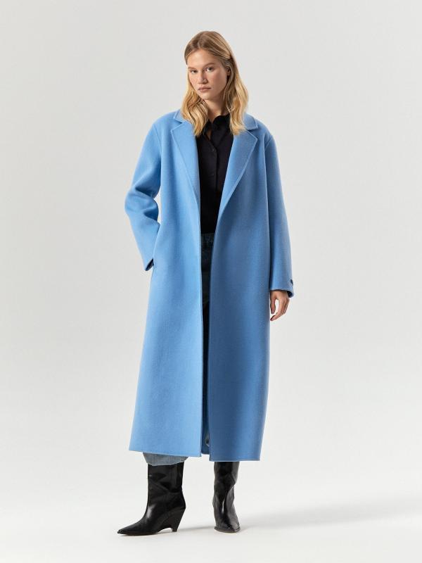 Элегантное манто в бежевом цвете смотрится современно и необычно. По бокам имеются разрезы. Предусмотрены специальные прорези для пояса. Материал более чем на 2-3 состоит из натуральной шерсти высокого качества и выполнен по технологии double-face: благодаря этому он дорого выглядит и отлично держит форму. Соединяли детали и прошивали пальто вручную: премиальное исполнение подтверждает вшивной ярлык hand made на рукаве. Пальто рассчитано на температуры до +5°C. Сделано без подкладки.