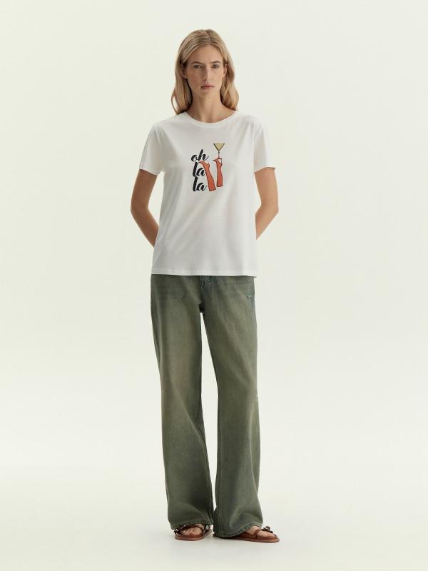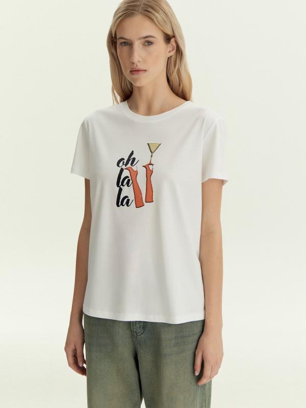 Хлопковая футболка в белом цвете с заводным принтом — для нескучных образов. Подойдёт для офиса в пятницу и выходных, для бранчей и вечеринок, дел и отдыха. Модель прямого силуэта с круглым вырезом станет основой множества образов. Длина позволяет носить футболку как навыпуск, так и в заправленном виде.