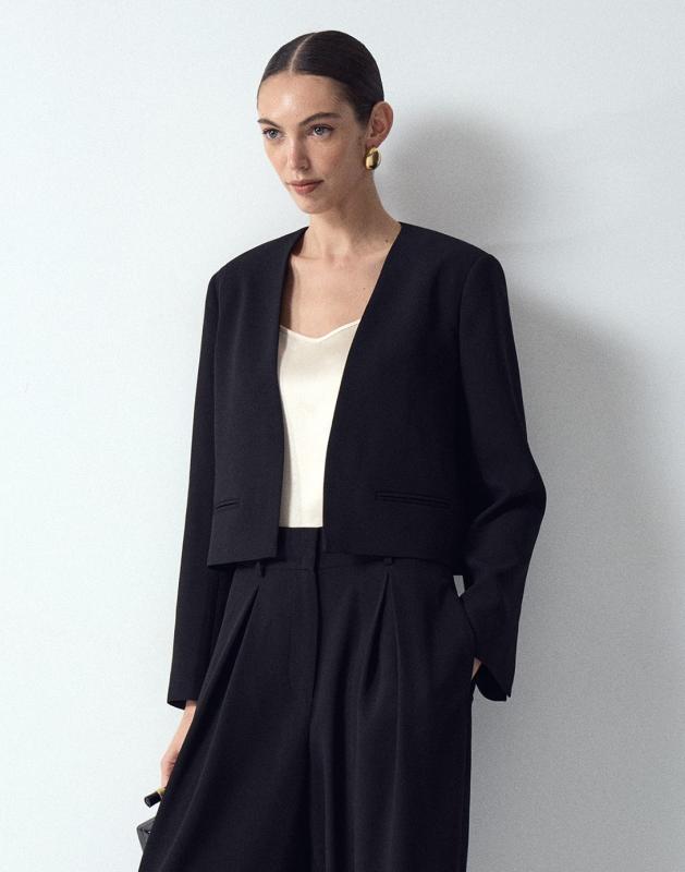 Креповый жакет-болеро без застежек привлекает своей элегантностью и необычными деталями. Главный акцент сделан на рукавах: шлица придаёт образу лёгкость. Жакет дополнен изящными карманами с листочками. Модель будет прекрасно сочетаться с любым лаконичным платьем-комбинацией или базовым платьем-футляром, добавляя образам лёгкую ноту театральности или вечернего шика. Благодаря лаконичному дизайну он легко вписывается в гардероб, дополняя как торжественные, так и повседневные образы. Незаменим, если в арсенале любимых вещей много открытых топов на тонких бретелях и комбинаций с открытой спиной.
